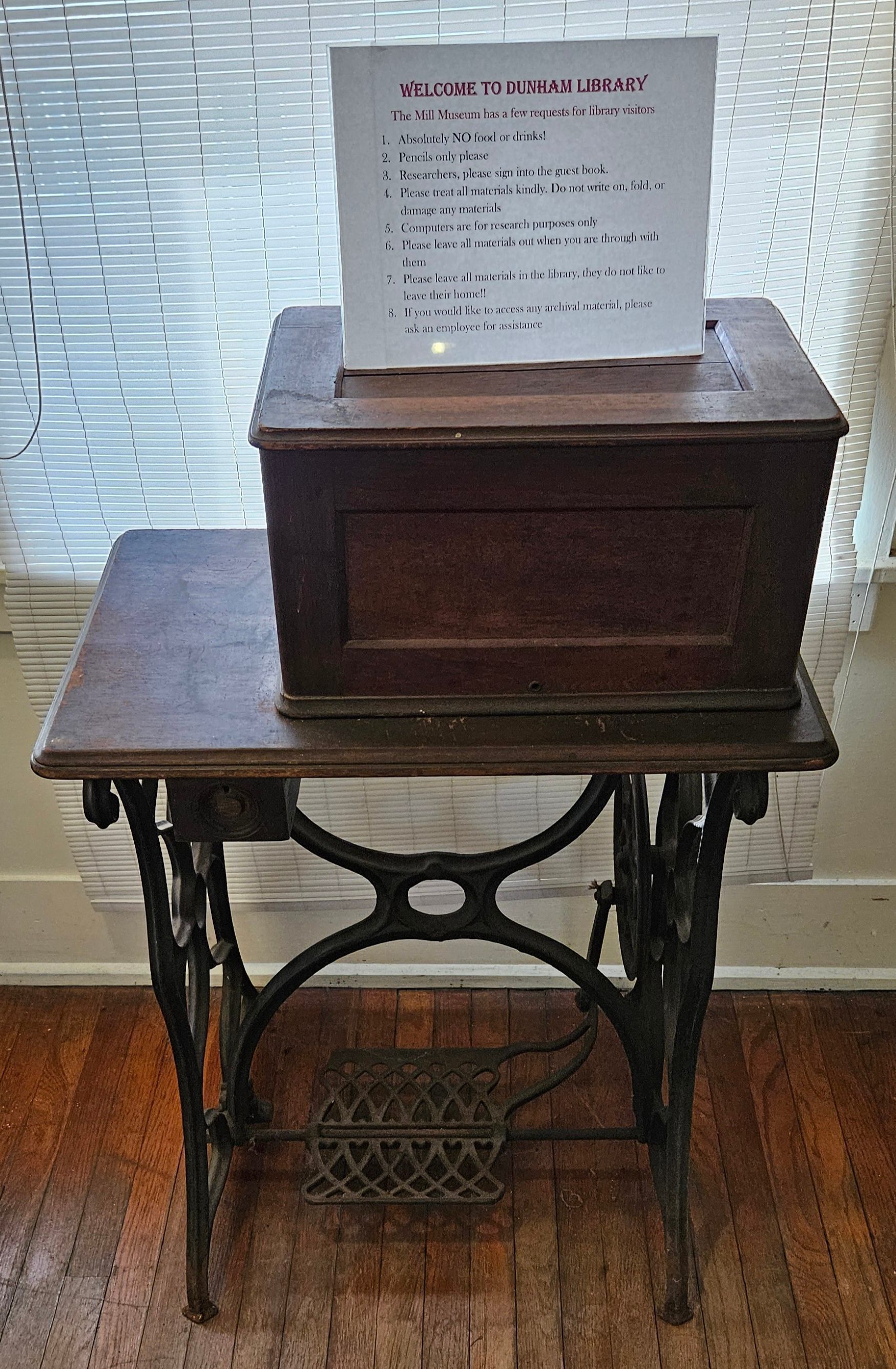 The patenting of the sewing machine by Massachusetts native and Connecticut transplant Elias Howe in 1846 touched off a technological, industrial, and social revolution in the United States. By making possible the manufacture of inexpensive clothing, it greatly sped up the pace of American industrialization (which had begun only a few decades earlier with the inventions of the drum carder, spinning jenny, power loom, and cotton gin) and led to the building of newer, larger, and more modern textile mills, such as the Willimantic Linen Company’s great granite Mill Number Two and modern brick Mill Number Four. By changing the way that clothing was manufactured, it spelled the end of cottage industry and the old putting out system and ushered in the age of the sweatshop. By appealing to middle class homemakers, it facilitated the Cult of Domesticity and provided middle class women with the opportunity to prove that they could master complex machinery. Widely available a half century before typewriters or automobiles, more than any other machine the sewing machine came to symbolize American women’s work in the modern machine age. From "Sewing Revolution: The Machine That Changed America," by Jamie Eves, Beverly L. York, Carol Buch, and Michele Palmer. https://millmuseum.org/sewing-revolution/.Collection
