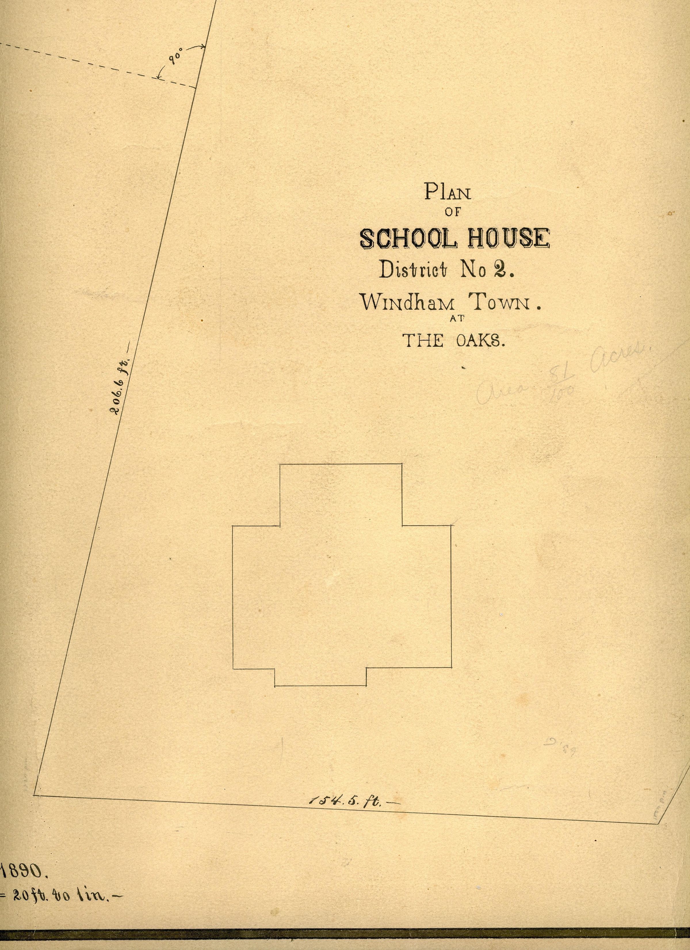 Site plan of school house, District No. 2, Windham Town, at the Oaks. Scale: 1 in. = 20 ft.Collection