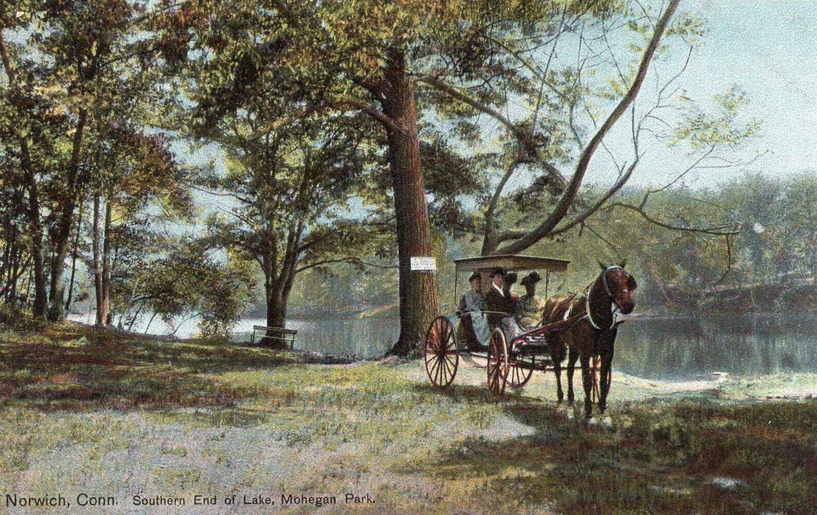 A postcard of the southern end of the lake at Mohegan Park in Norwich, Conn.Postcard Details