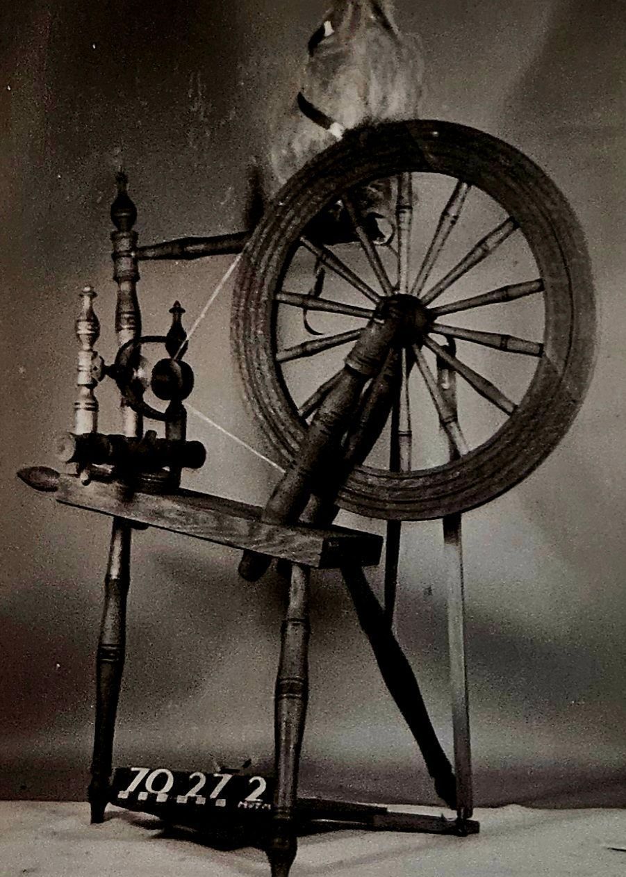 Used to spin flax into yarn or thread.Context