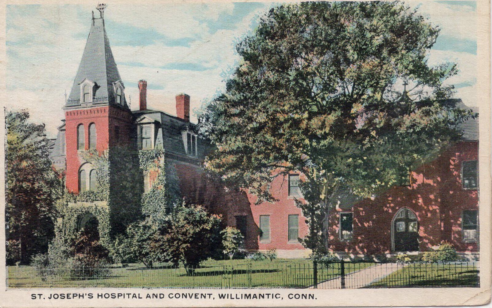 A postcard of the St. Joseph's Hospital and Convent in Willimantic, Conn.Condition