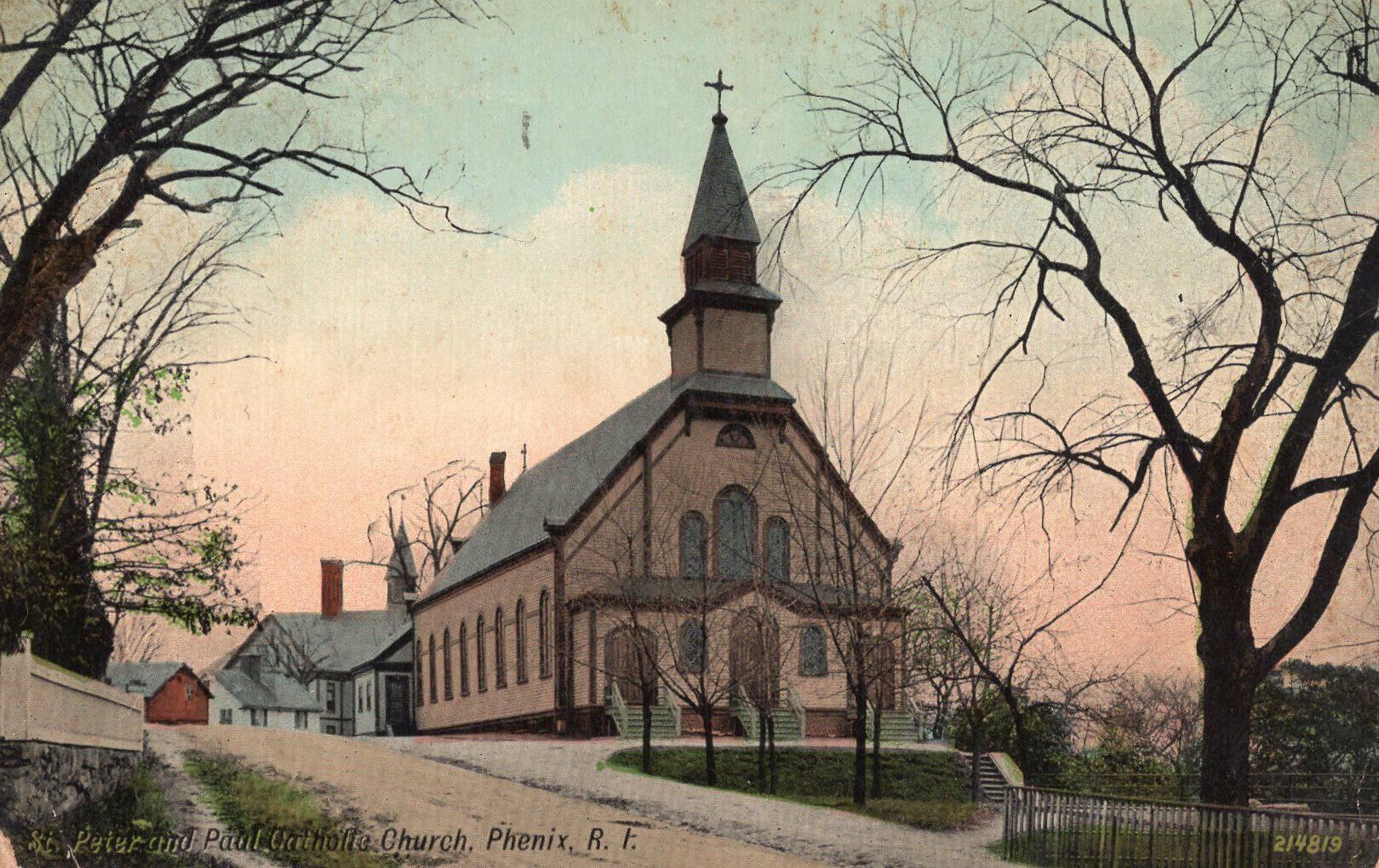 A postcard of the St. Peter and Paul Catholic Church in Phenix, R.I.Condition