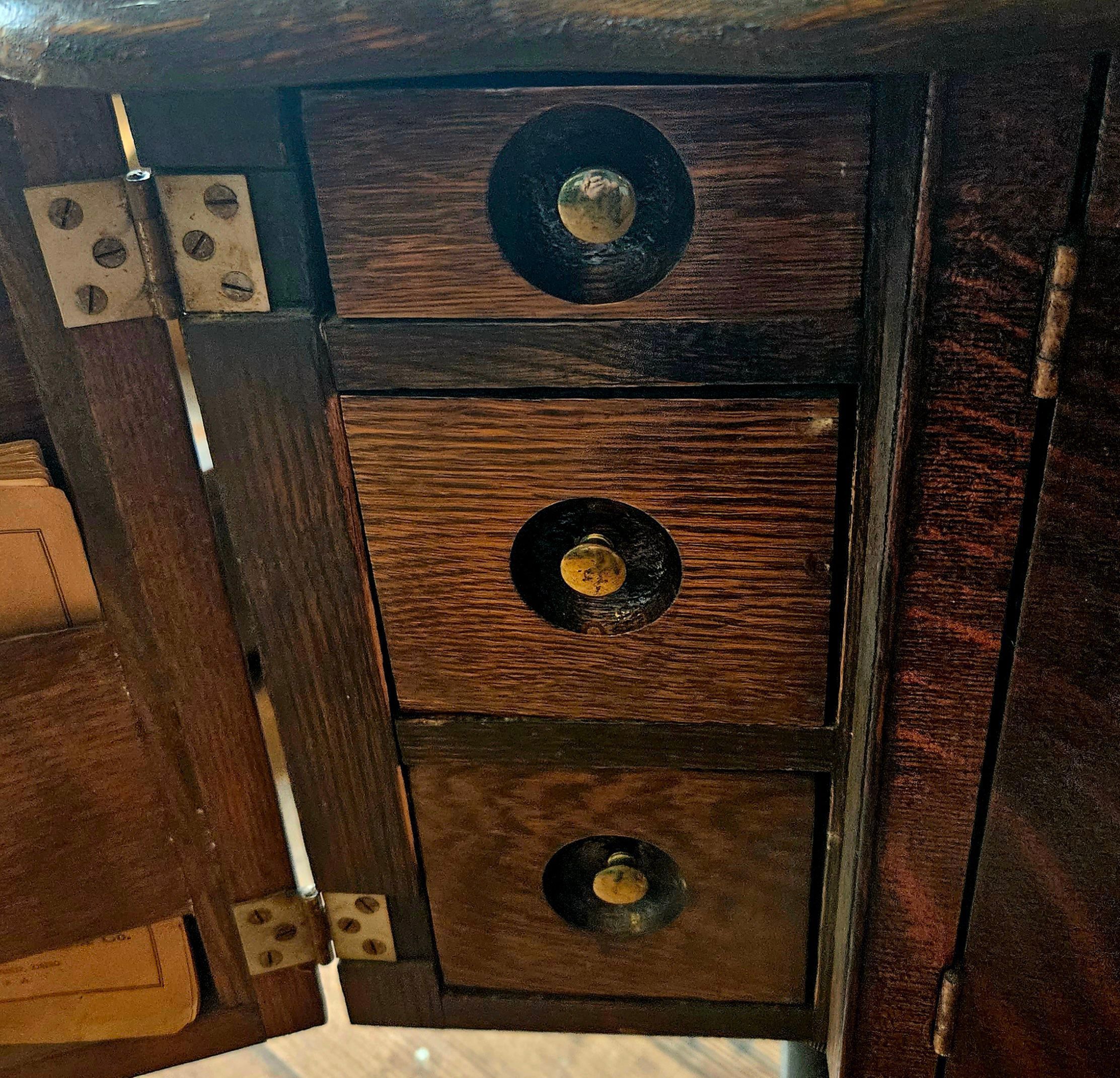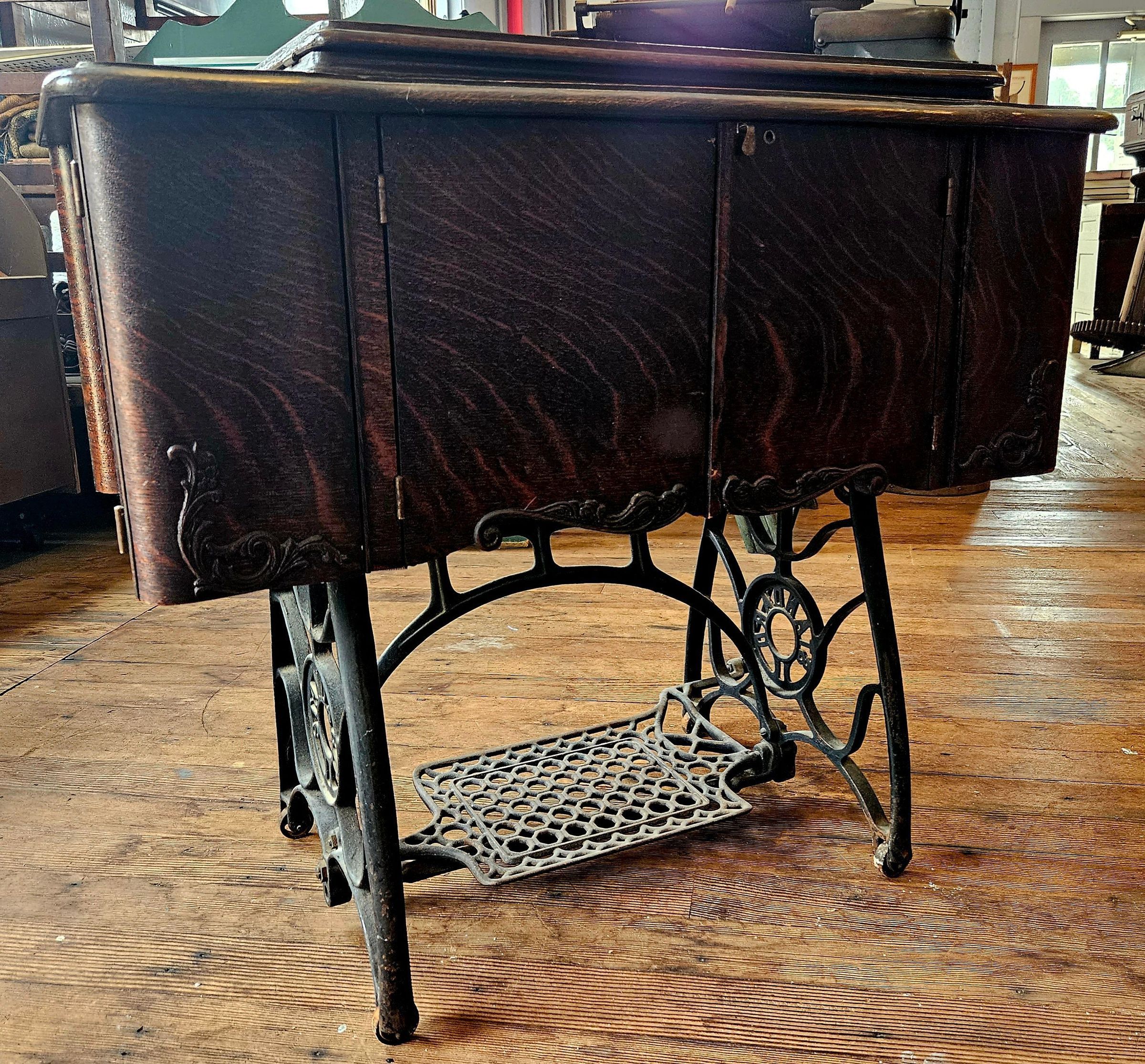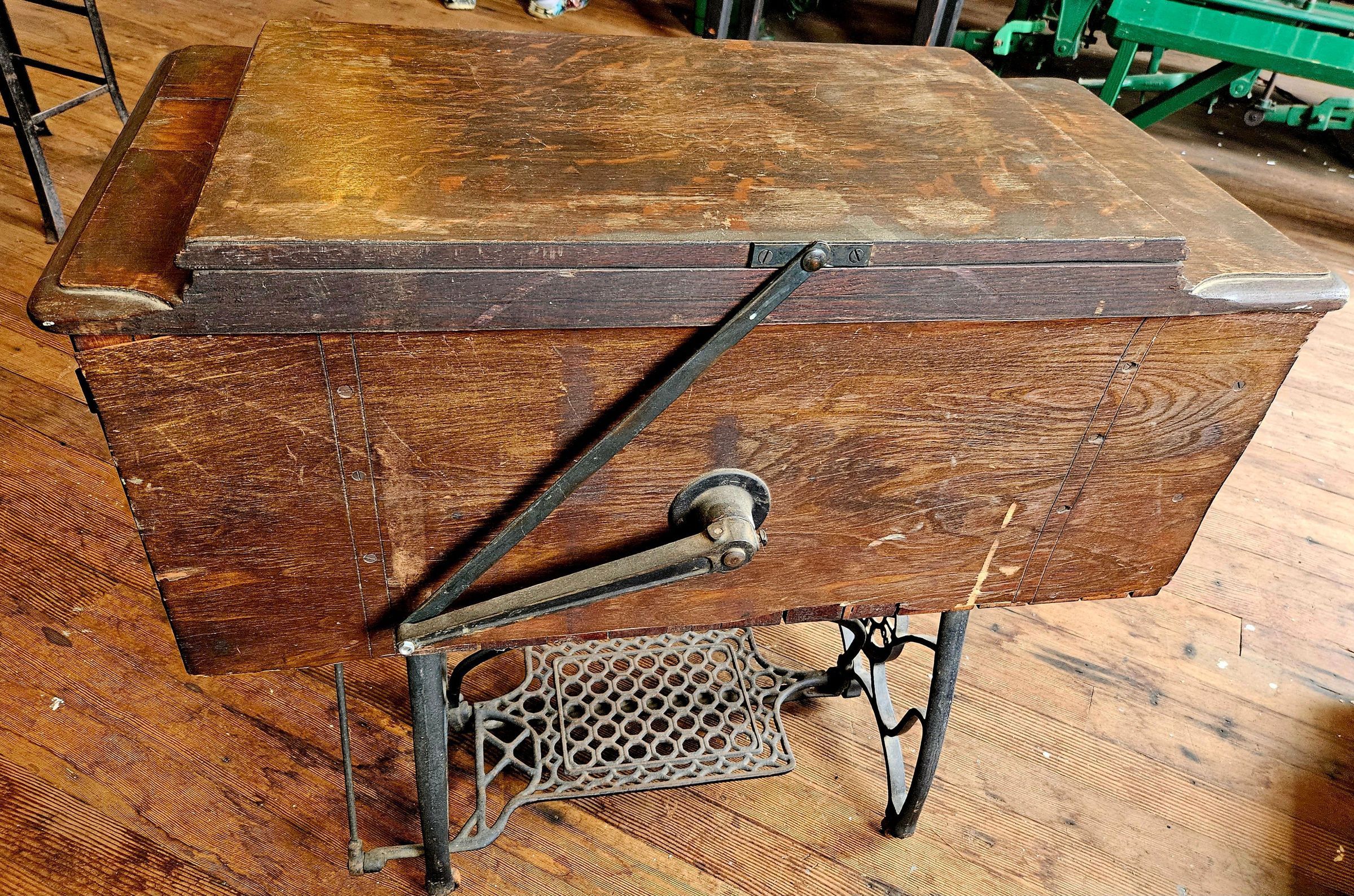 Standard brand treadle sewing machine in cabinet, c. 1905. The Standard Sewing Machine Company was founded in 1884 and located in Cleveland, OH. It was one of the many sewing machine companies founded after the dissolution of the Sewing Machine Combination, a patent pool and trust created by the Howe, Singer, Wheeler & Wilson, and Grover & Baker companies and based on the Elias Howe patent. See https://millmuseum.org/sewing-revolution/ for more information about the Combine. Standard's most popular model was the Standard Rotary, which was manufactured relative unchanged from the 1880s into the 1910s. This particular model carries patent dates through 1904. (Standard also made the Minnesota "L" and Kenmore sewing machines, the latter for Sears Roebuck.) Standard was bought by the Osaan Company in 1929, and later acquired by Singer in the 1930s. The sewing machine is a treadle-only machine; there is no motor.