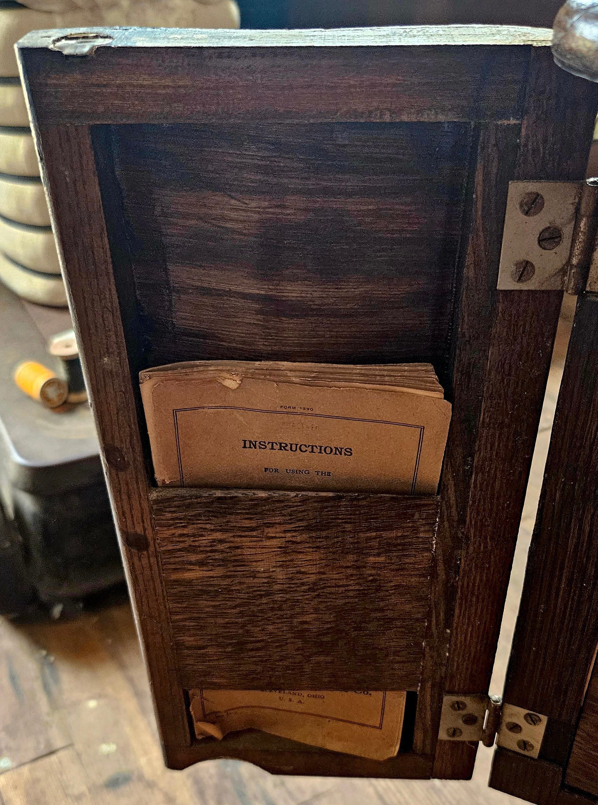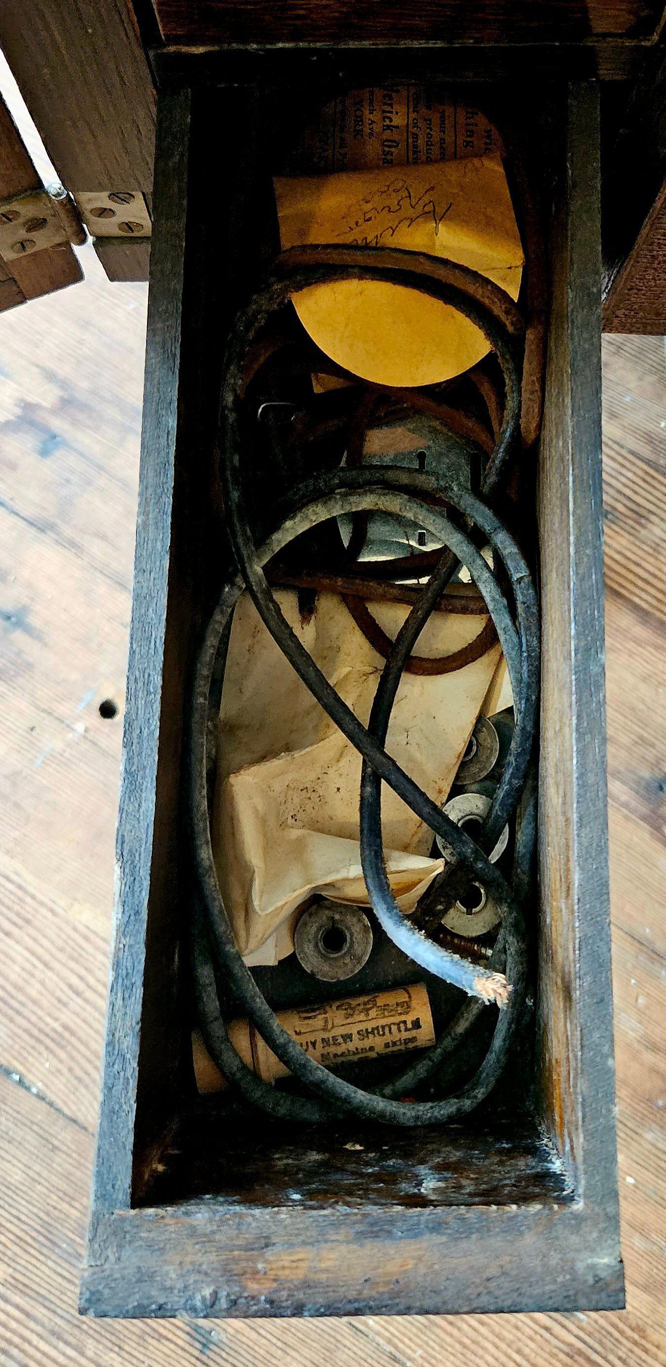 This machine once belonged to Caroline Murphy of New Milford, CT. She used it to sew clothing for her family, including her son, Allen Murphy. Caroline Johannah Sauck Murphy was born 9 Sep. 1900 (one source) or c. 1901 (1930 U.S. Census) in New Milford and died in 1986. Her parents were Robert H. Sauck and Johannah Hansen Sauck. In 1900 Robert Sauck was a tobacco sorter who rented his home in New Milford. He migrated to the United States in 1880 from German Poland. Caroline was one of six children. Robert married Johannah (or Hannah) Hansen, who had migrated to the United States from Denmark or Sweden. Caroline married Stanley C. Murphy c. 1928, and their only child, Allen (or Allan), was born c. 1930. The 1930 U.S. Census shows them living in New Milford Village in a home they rented. They owned a radio. Stanley was born c. 1902. He was born in Connecticut, as was his father. Stanley's mother had been born in Germany. Stanley worked as a house painter for many years. Stanley appears in the 1910 census as a child living with his parents Howard and Carrie in New Milford. Howard was a house carpenter who rented his home. In 1930, Caroline was a stay-at-home housewife and mother, but in 1940 she was employed as a machine operator in a bleachery. Caroline's father had been born in Germany and her mother in Denmark. Caroline passed the sewing machine on to her daughter-in-law, and eventually it become the property of Caroline's great granddaughter, Naomi Murphy of Vernon, CT. Because the sewing machine appears to have been manufactured c. 1905, it is clear that Caroline acquired it used, perhaps from her own mother Johannah, who was a young housewife in New Milford in 1905.Use