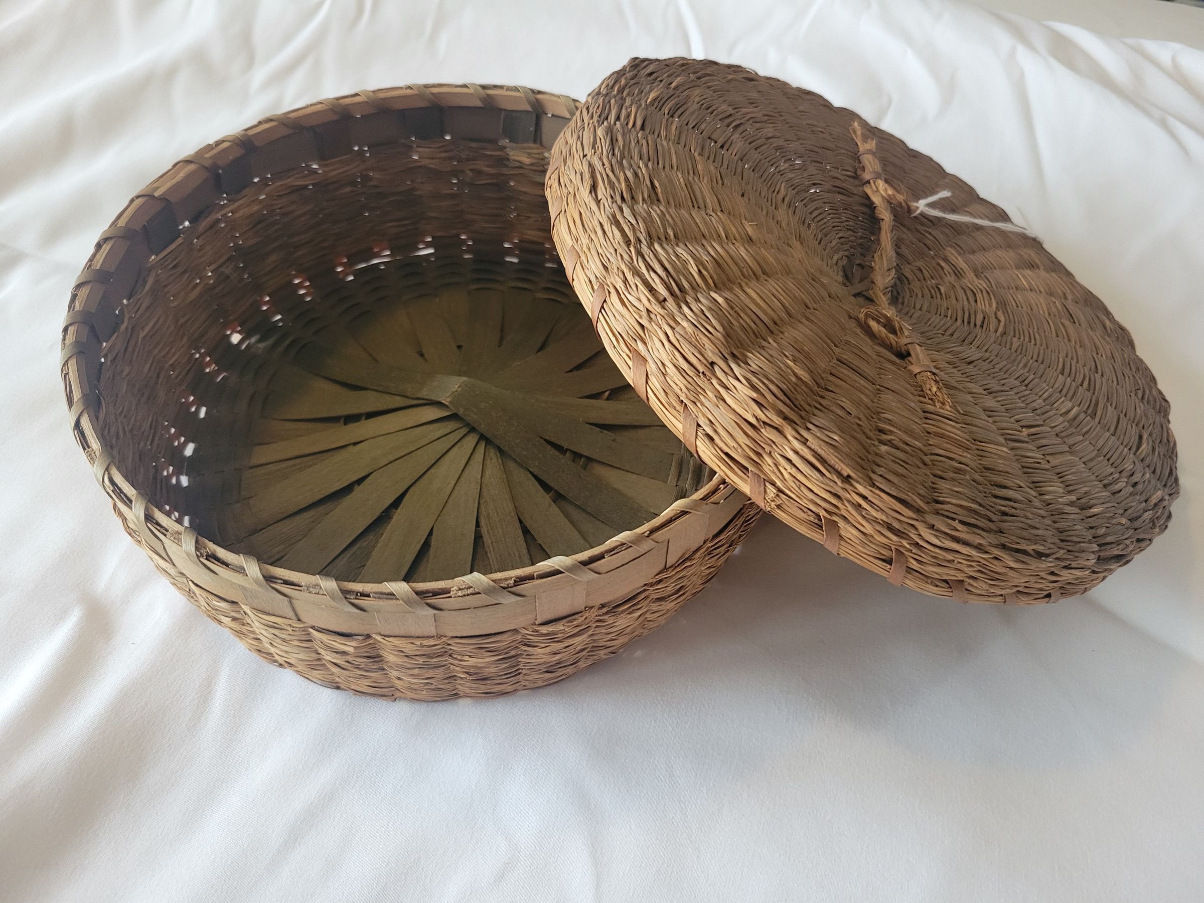 A straw basket, used by the donor to hold sewing notions.Collection