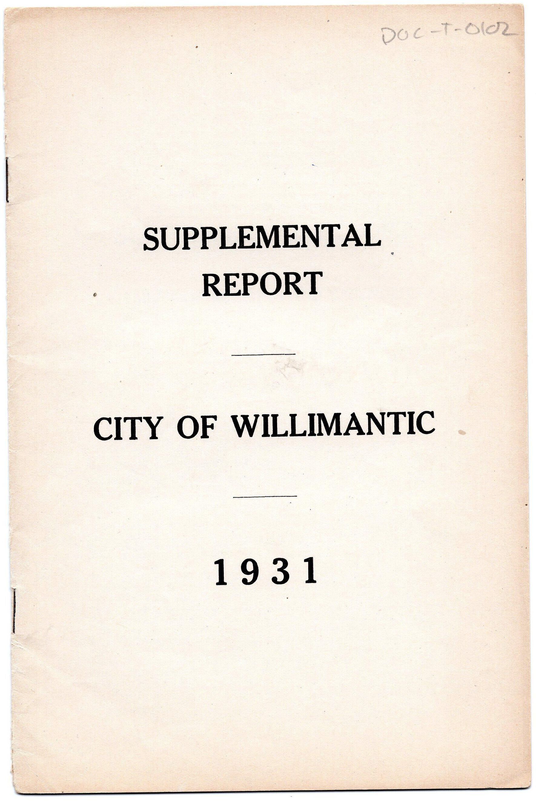 Supplemental Report for the city of Willimantic November 1931Entry/Object ID