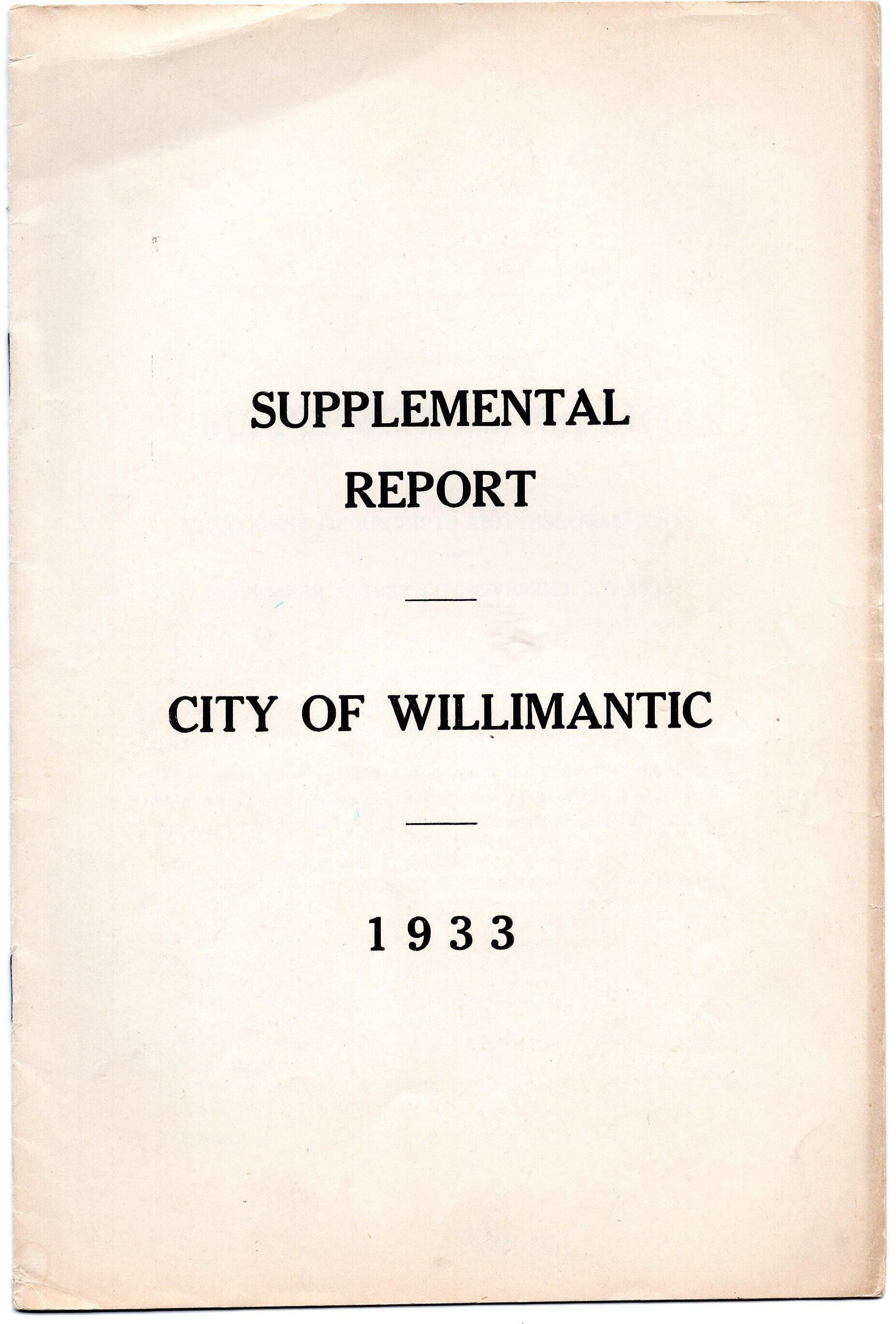 Supplemental Report for the city of Willimantic, November 1933Entry/Object ID