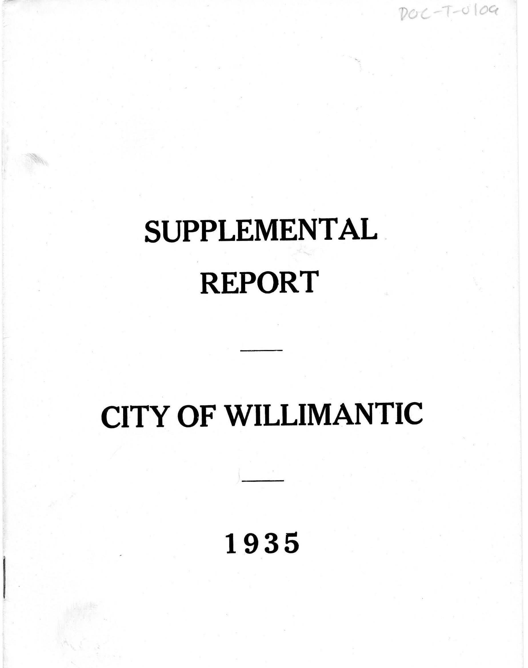 Supplemental Report of the City of Willimantic, November 1935Entry/Object ID