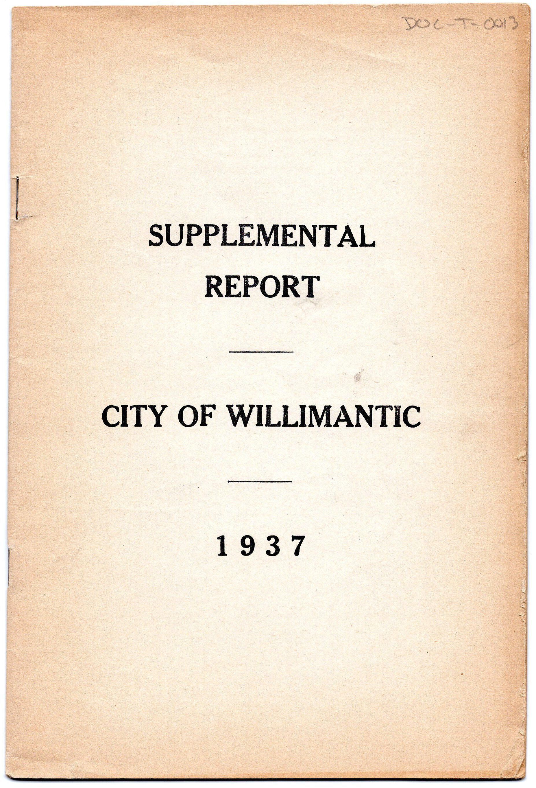 Supplemental Report of the City of Willimantic, November 1937Entry/Object ID
