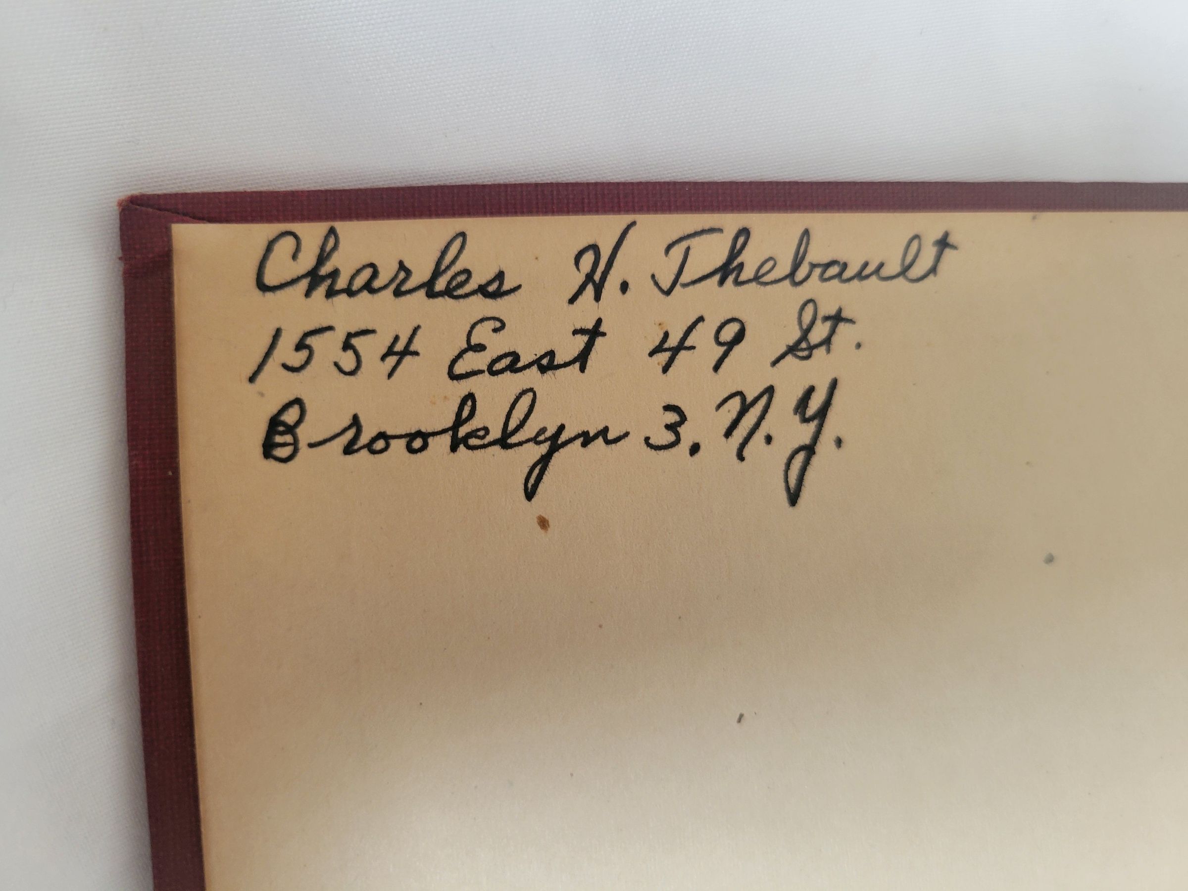 A manual for tailoring different kinds of garments according to the Sectional System. This is a manner of taking and using measurements for a garment which is proposed at the most accurate. The book also gives advice for running a tailoring shop. This particular book was owned by Charles Thebault, a tailor in New York. His name and address are written in pen on the inside front cover. The book itself is in good shape, though the paint in the letters of the title has worn off.Collection