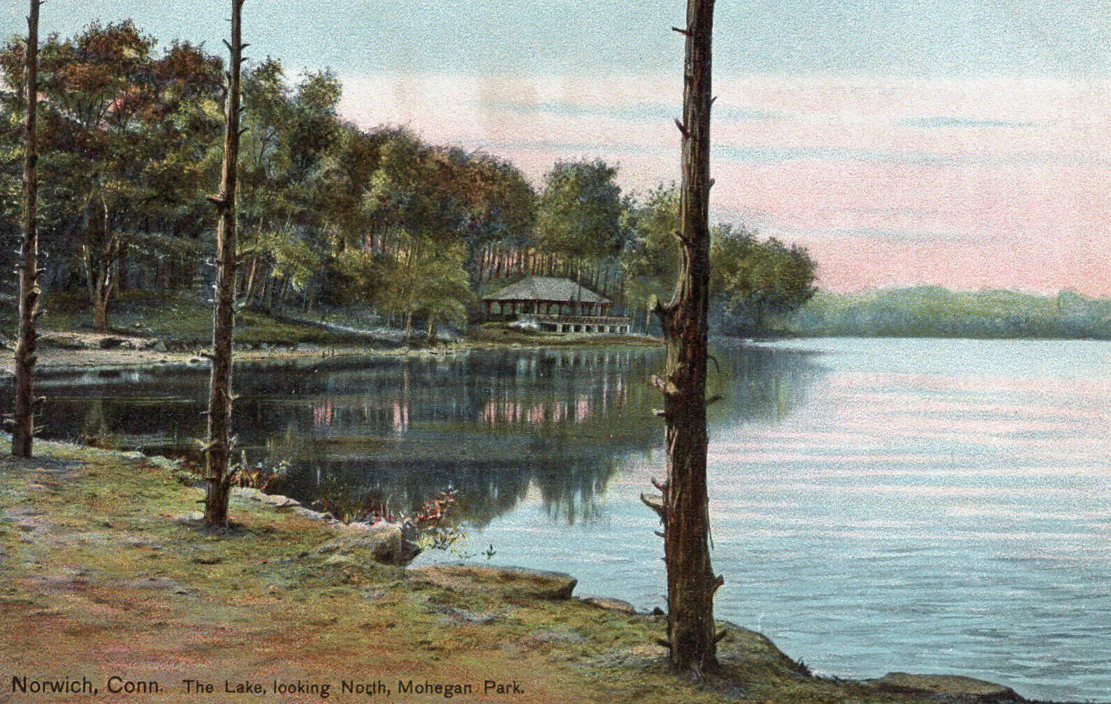 A postcard of the lake looking North at Mohegan Park in Norwich, Conn.Postcard Details