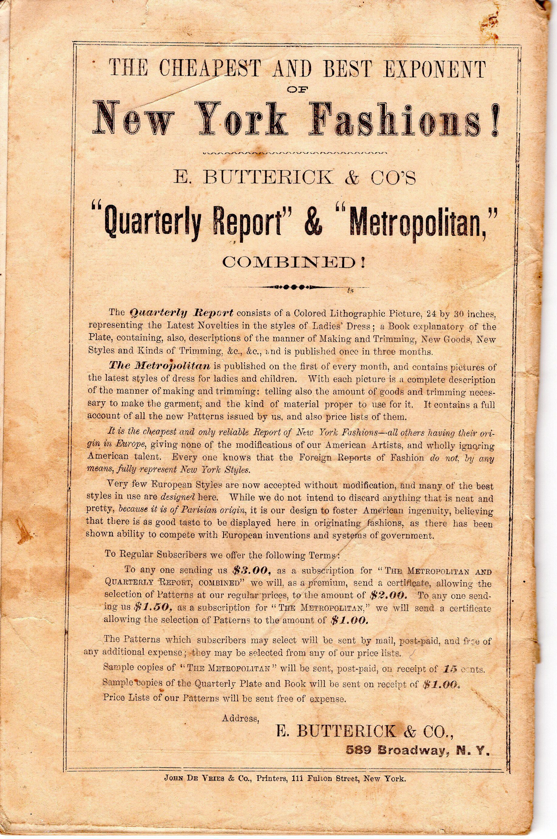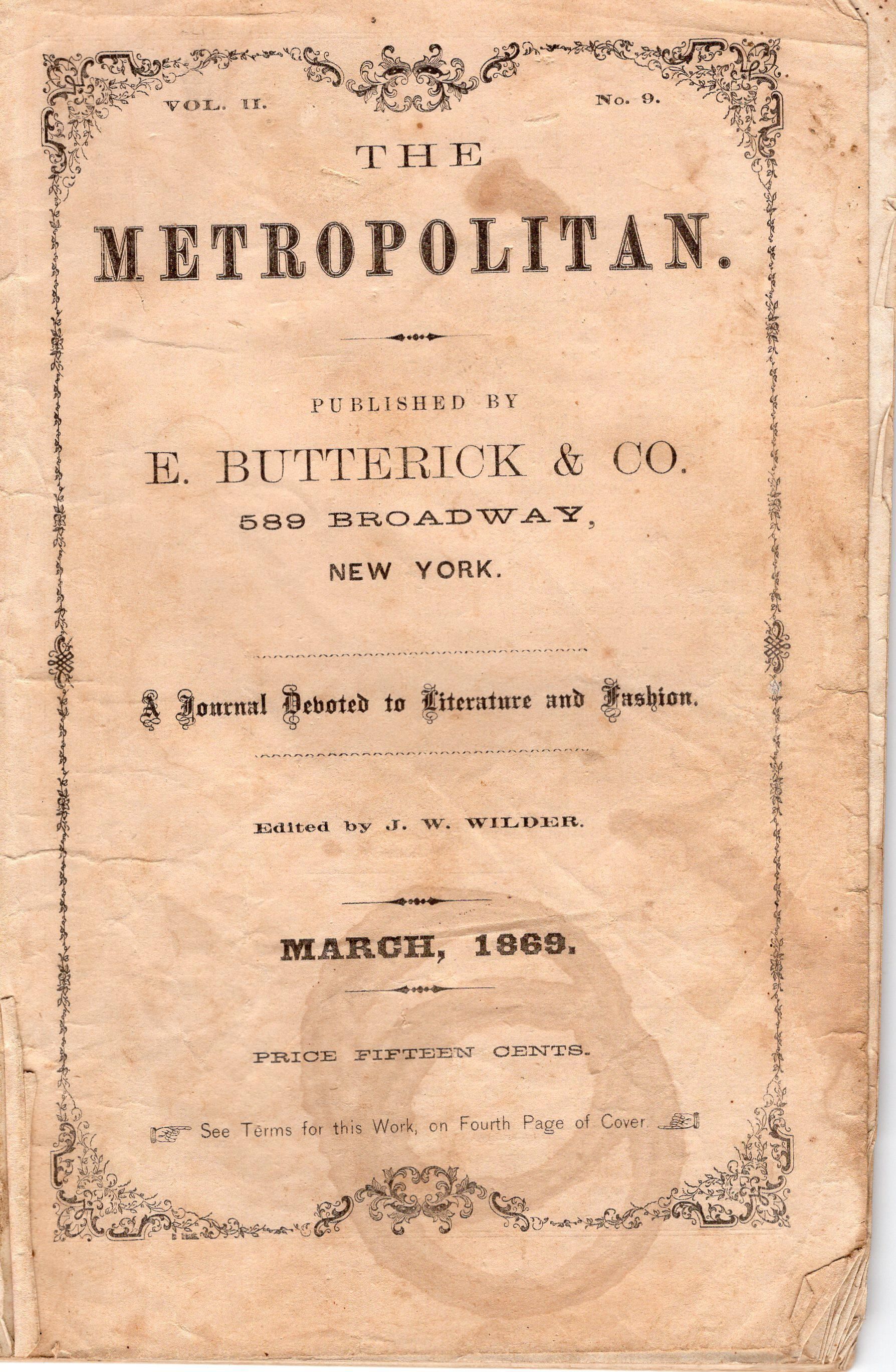 Butterick's The Metropolitan, a journal dedicated to literature and fashion from 1869.Created By