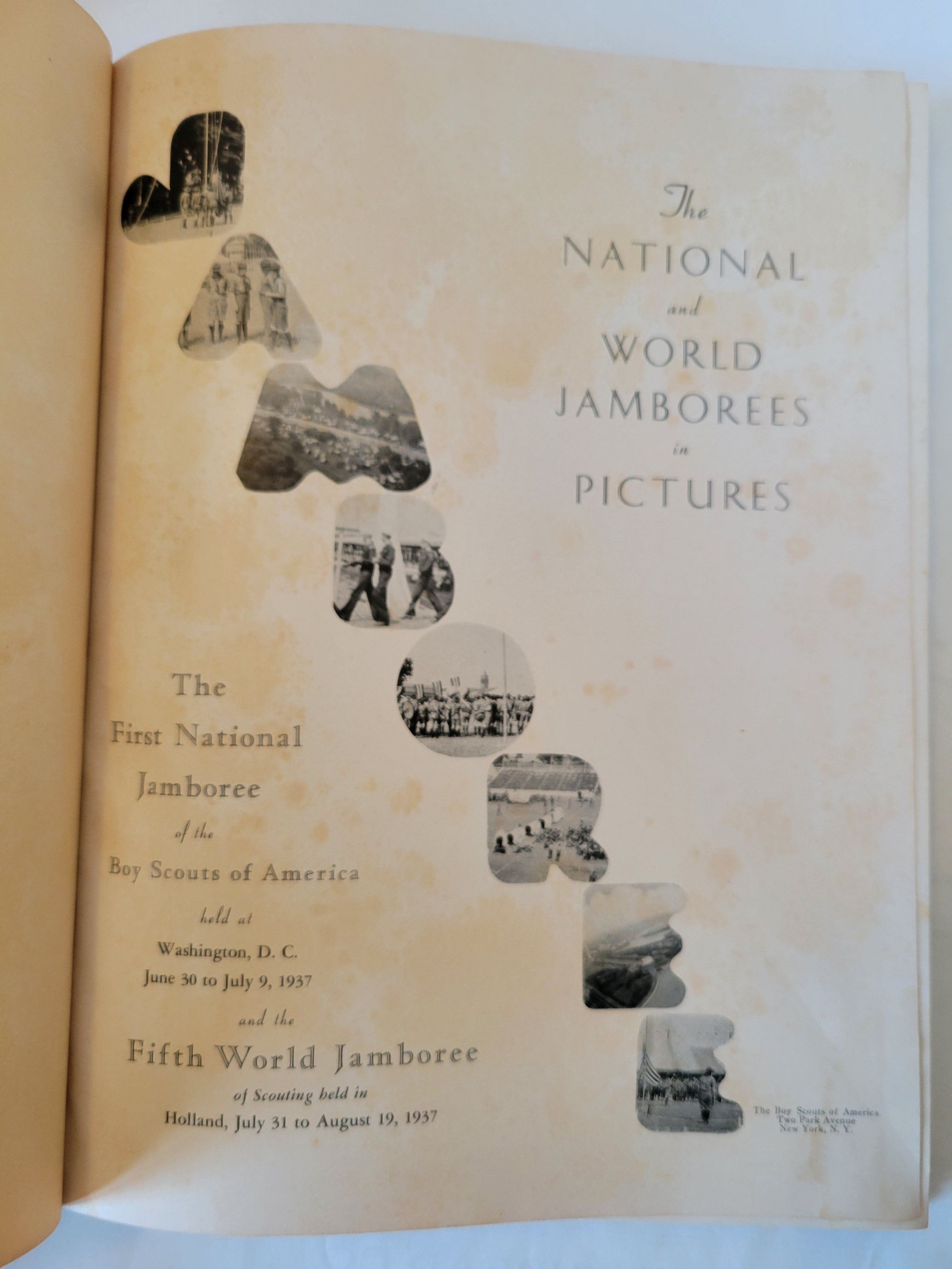 A book of pictures from the 1937 National and World BSA Jamborees, held in Washington DC and Holland respectively.Collection
