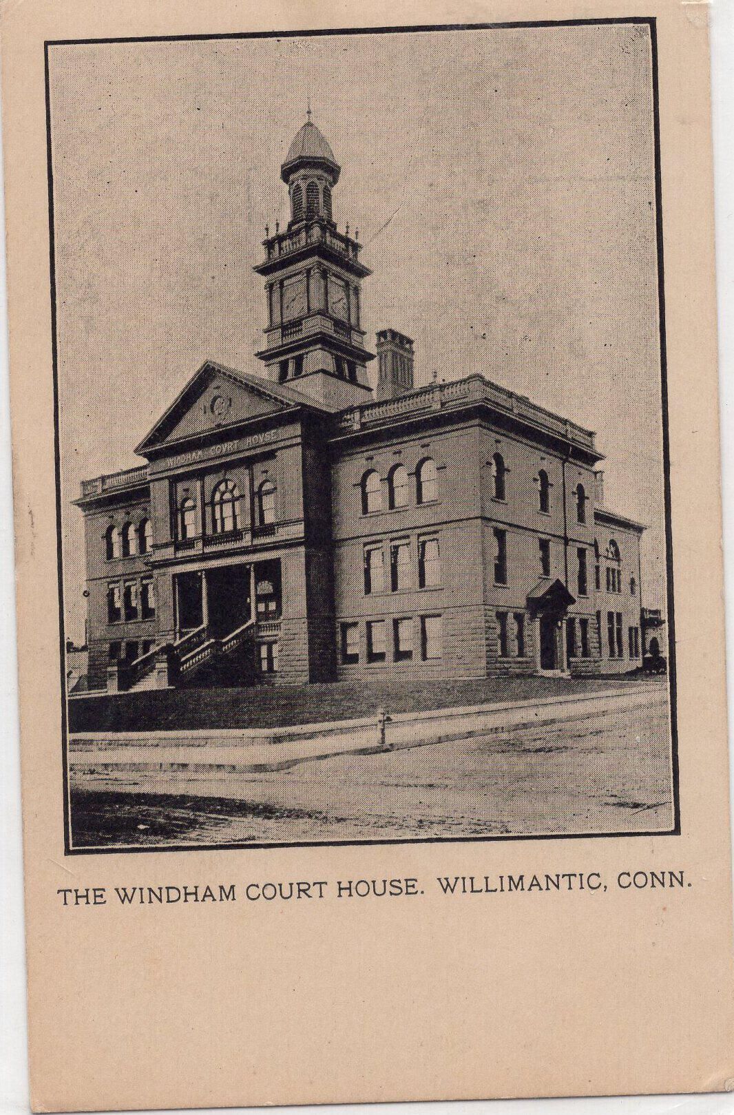 A black and white postcard of the Windham Court House in Willimantic, Conn.Condition