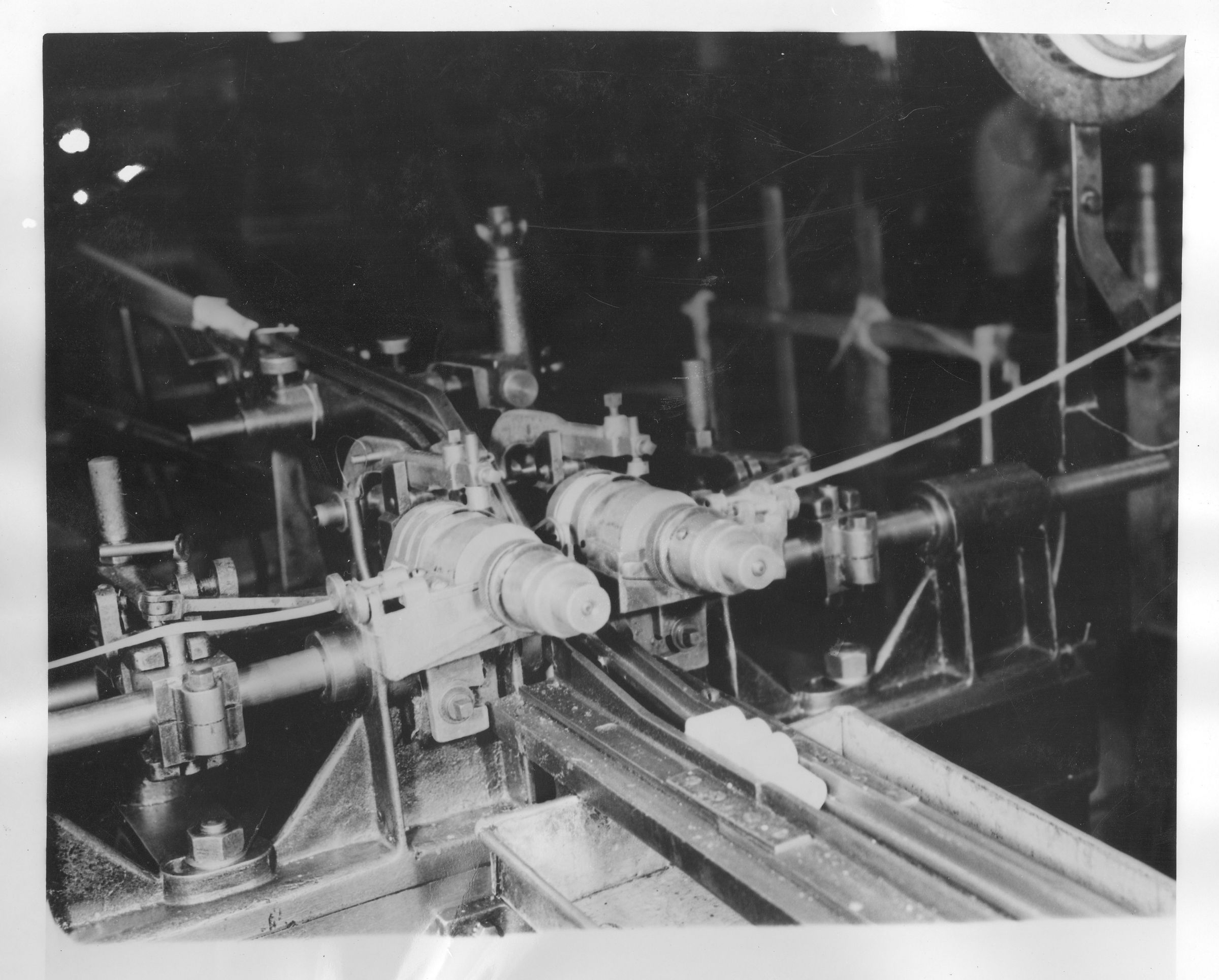 Black and white photographic print of a ticketing machine at the American Thread Company, Willimantic, CT. Unknown photographer.Photograph Details