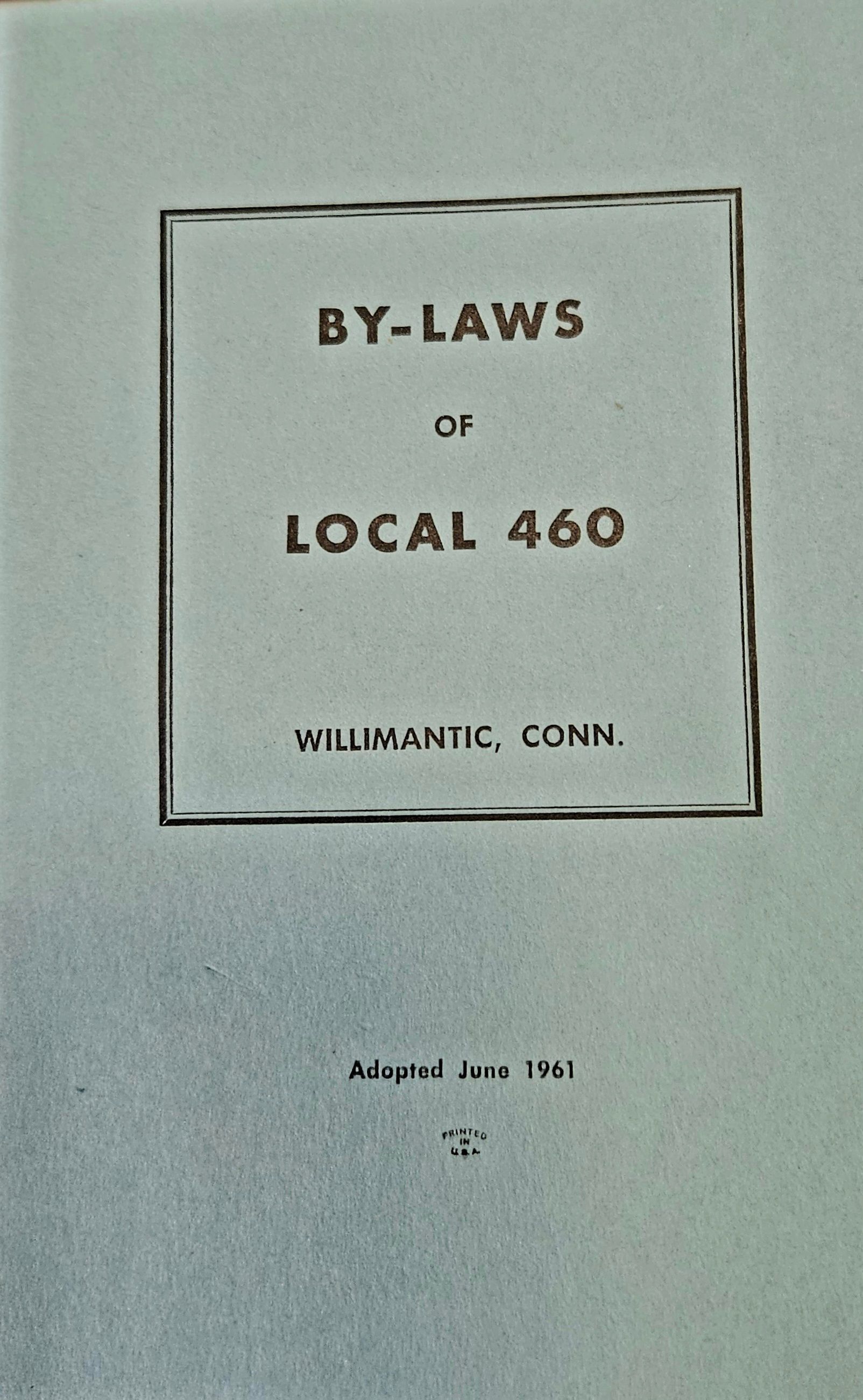 Bylaws of Local 460 [of the United Textile Workers of America], Willimantic, Conn. Adopted June 1961. Three copies.Collection