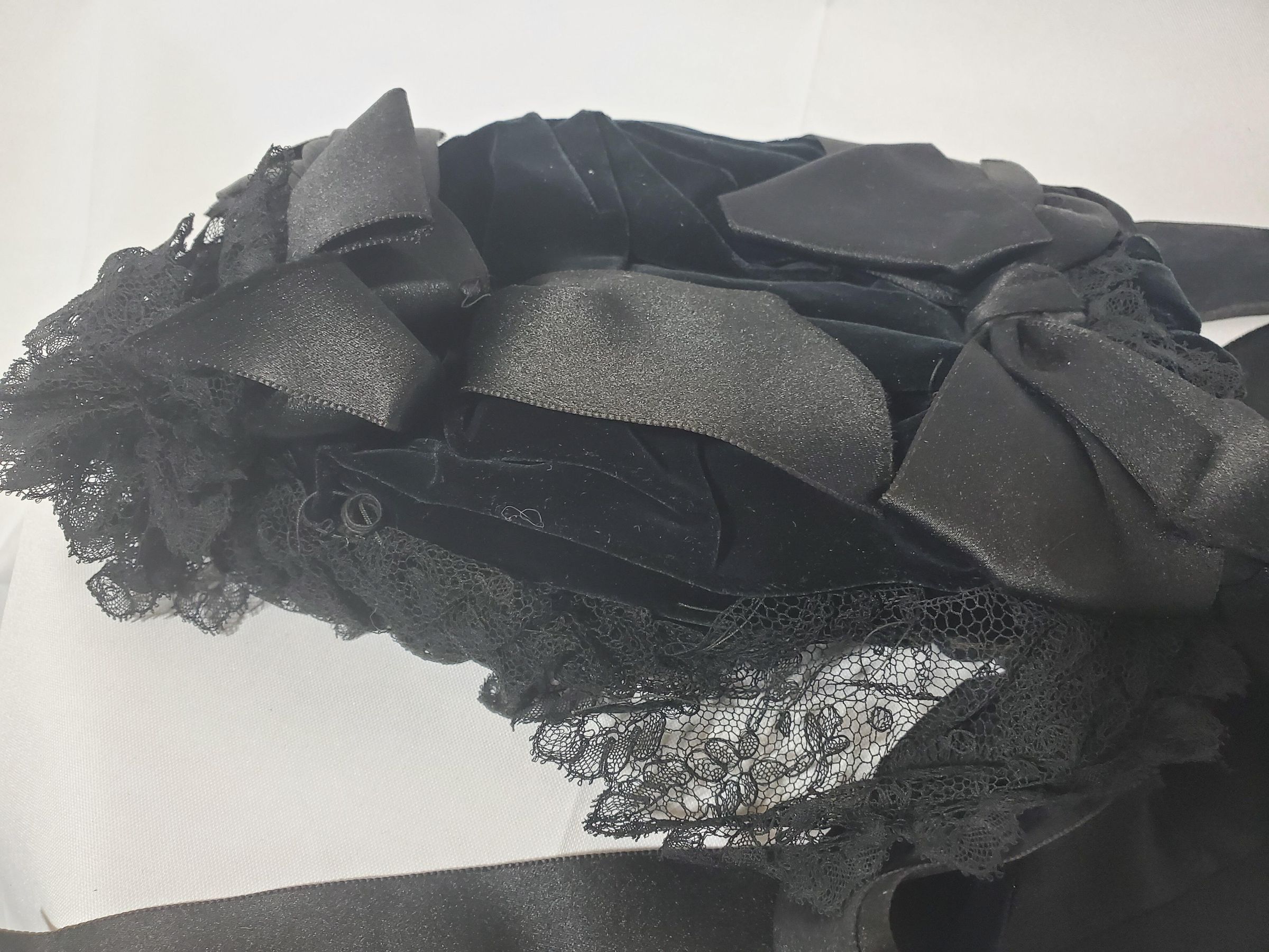 Hat would be worn on top of head. Although item is black, it does not mean it was worn during mourning.Created By