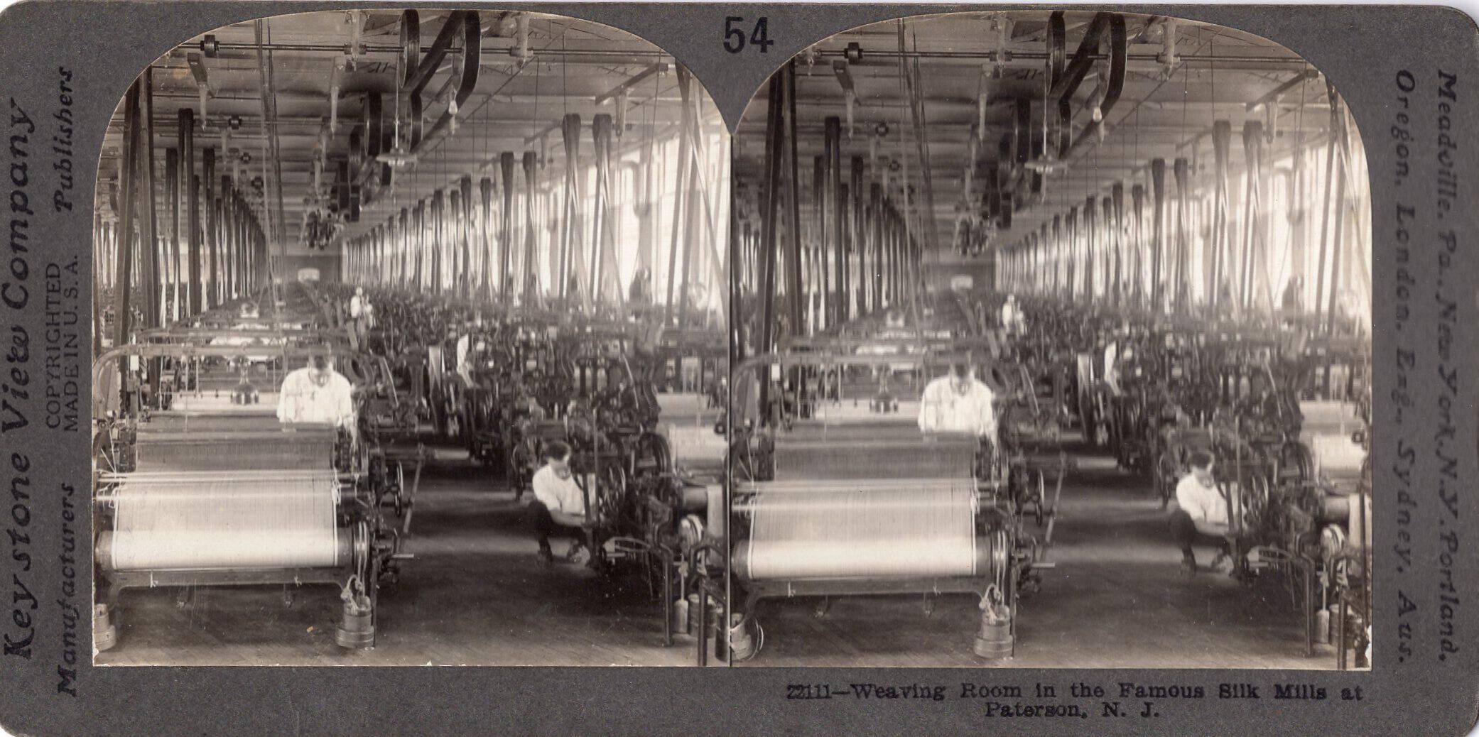 Keystone View Company created these cards to educate about many things. This card is about the weaving room in the silk mills in Patersen NJ, 1905.Photograph Details