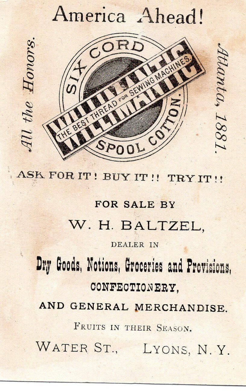 Tradecard from 1881, America Ahead! from American Thread Company. 3 exact copies are under this accession numberCreated By