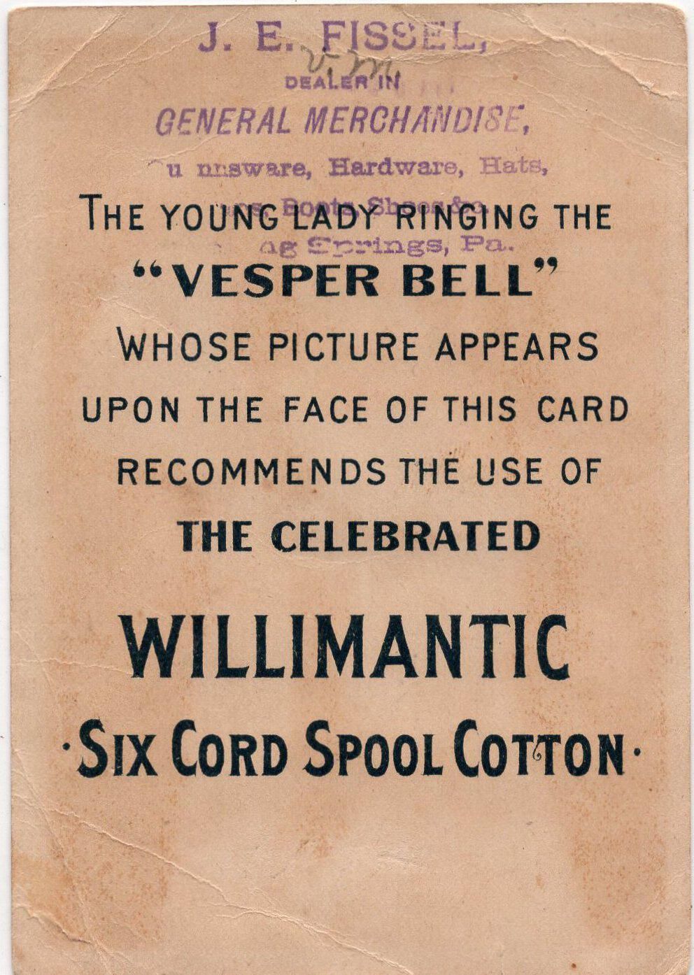 A Willimantic Spool Card from 1893, picturing the "Vesper Bell".