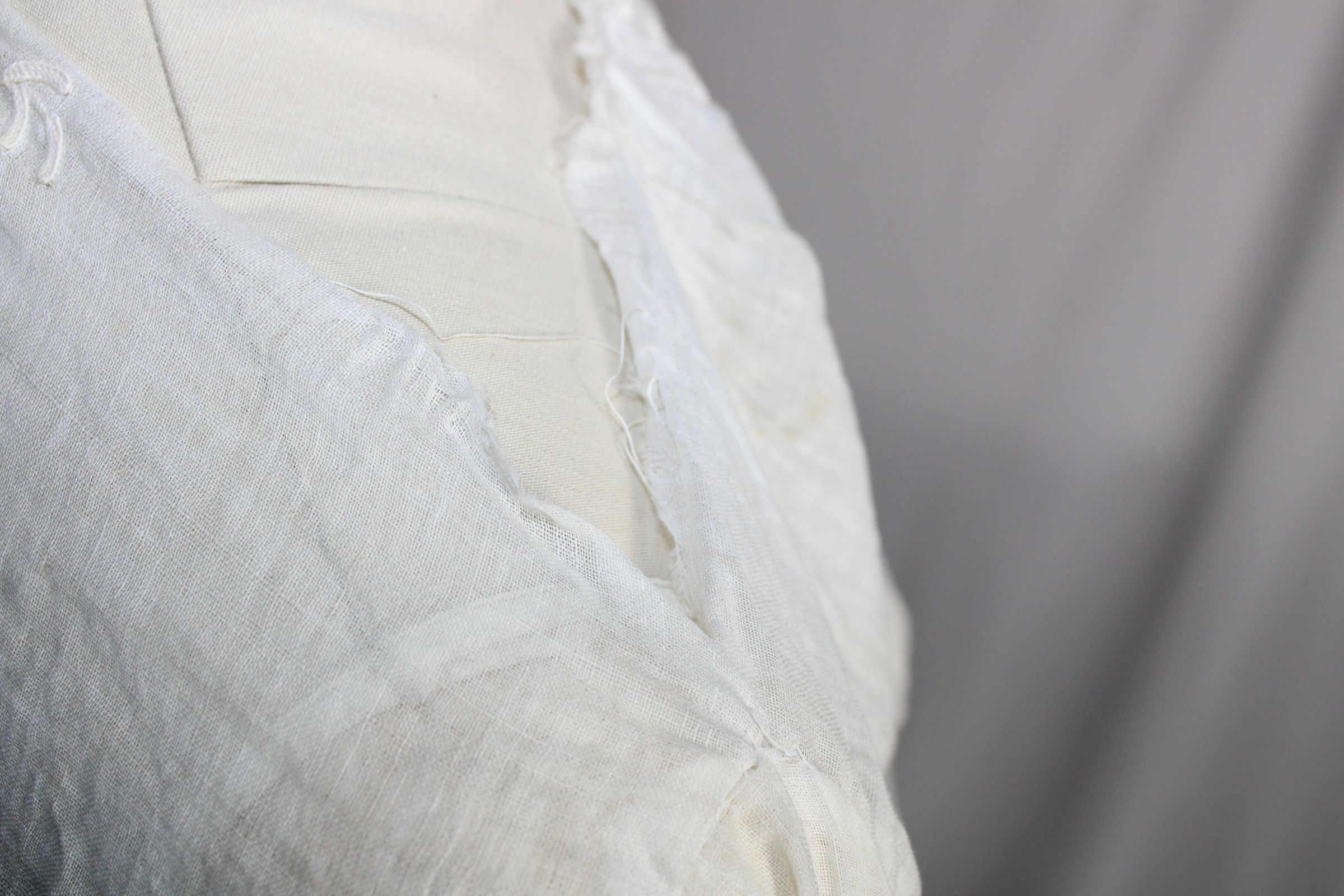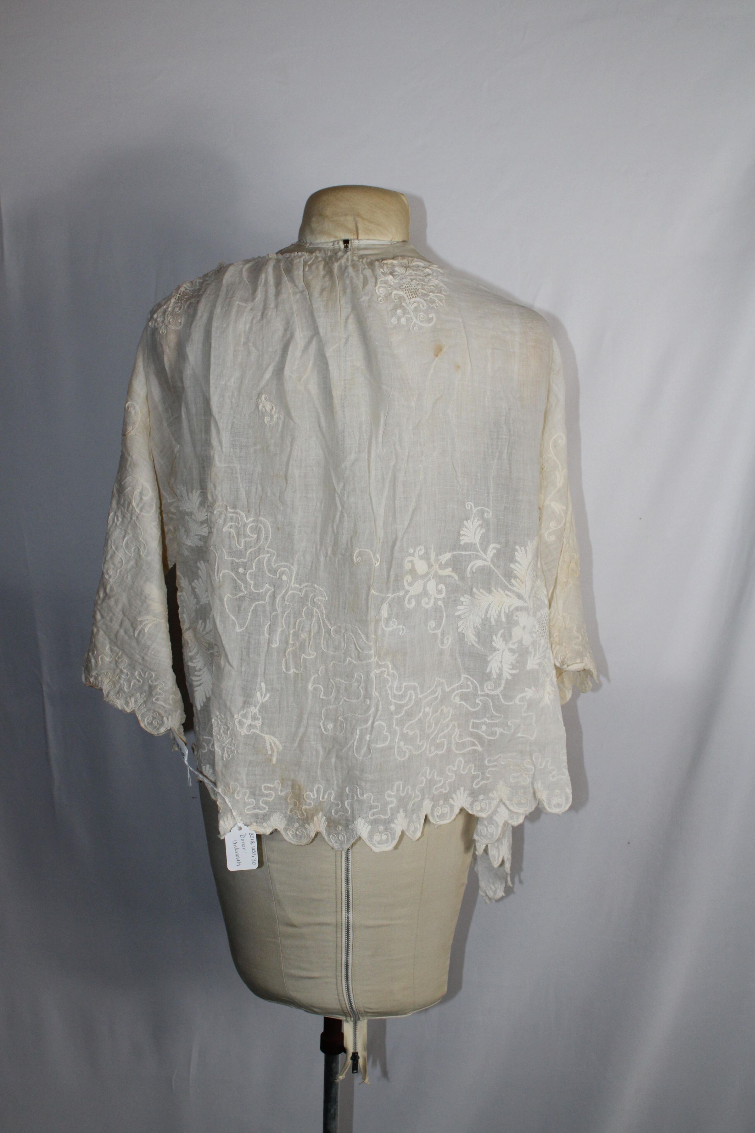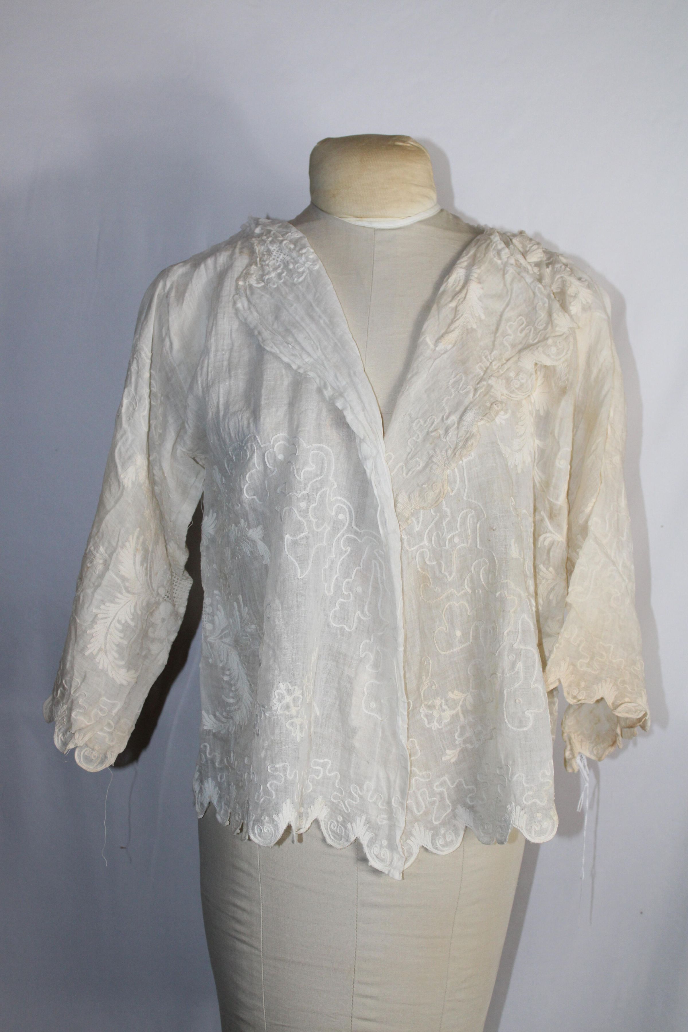Chain stitch embroidered open front blouse. Whitework. Produced at same time as artifact 2012.1000.32.