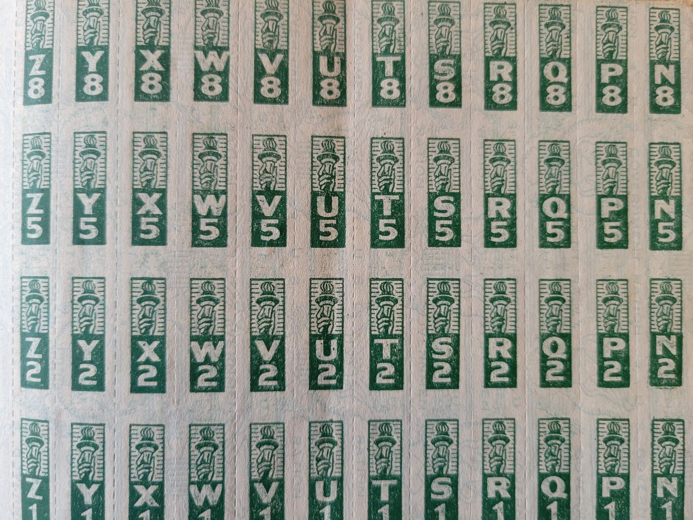 Ration books were issued to families and individuals during WWII to make sure people could get the groceries they needed, which were scarce, regardless of the amount of money they had. The stamps themselves were in sheet form, perforated individually, and color coded based on what they could be used to purchase. This is the last of the ration books issued during the war, though the rationing of sugar continued until 1947.Collection