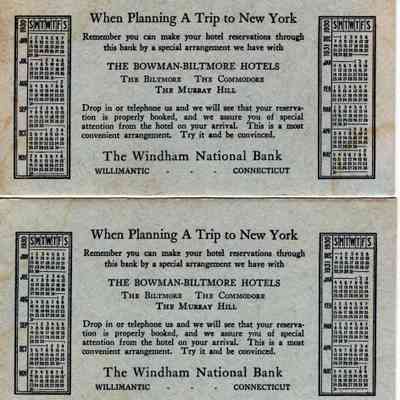 Advertisement from Bowman-Biltmore Hotels and The Windham National Bank 1930