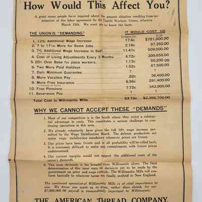 ATCO Willimantic Chronicle Appeal Against Union Demands 1951