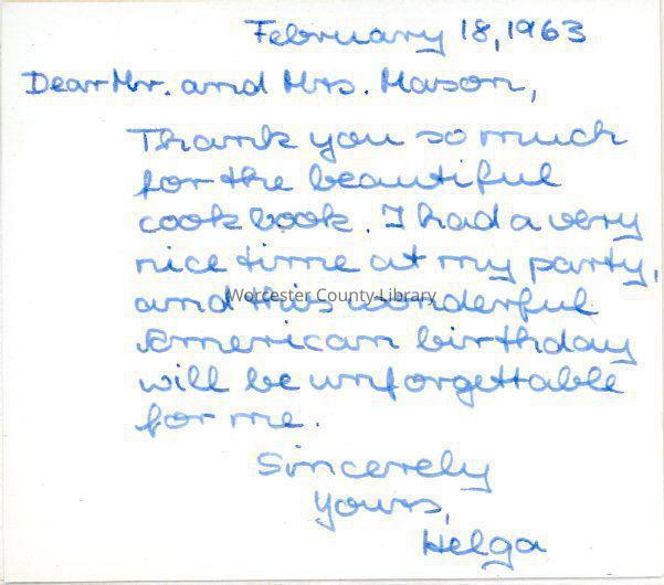 Correspondence between Helga Leenen and Mr. & Mrs. Mason, Feb. 1963Entry/Object ID