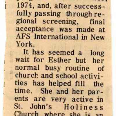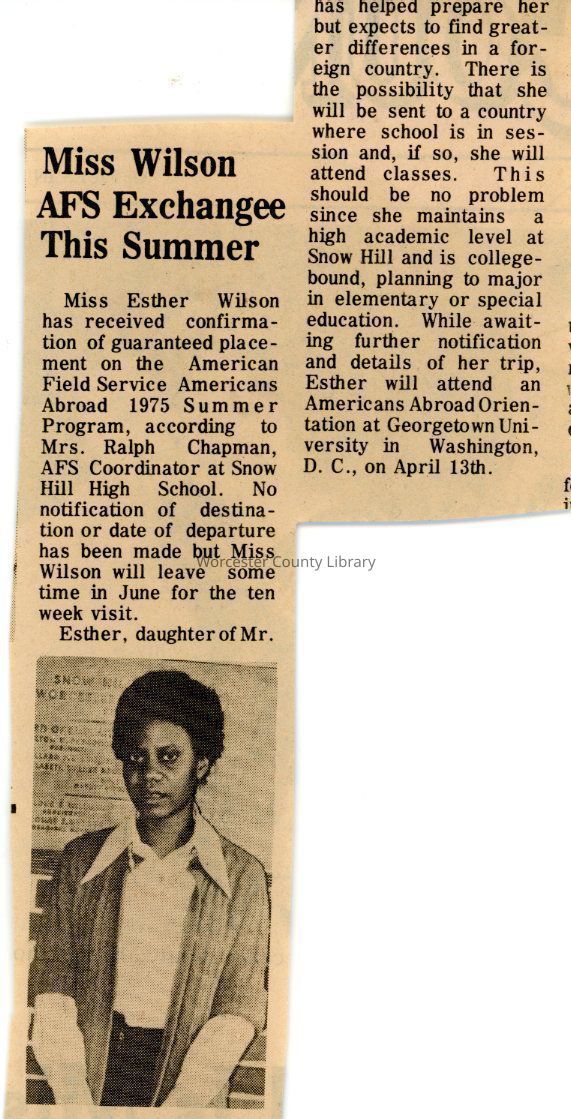 Newspaper clipping, “Miss Wilson AFS Exchangee This Summer,” 1975Entry/Object ID