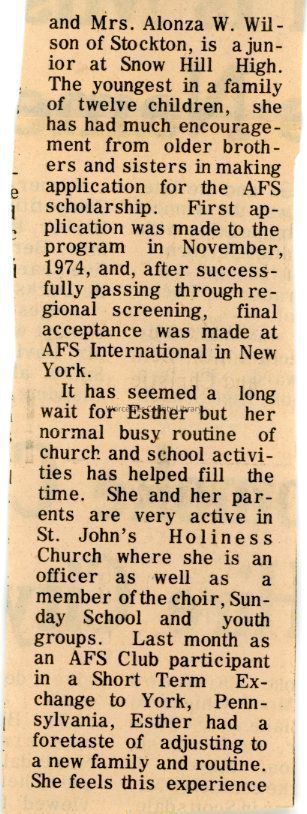 Esther Wilson, Mrs. Ralph Chapman, Snow Hill High School, Alonza W. Wilson, Mrs. Alonza W. Wilson, American Field ServiceCreated By