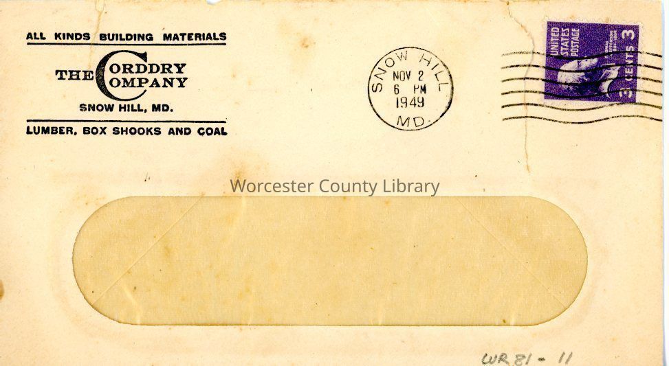 Envelope, The Corddry Company, Nov. 1949Entry/Object ID