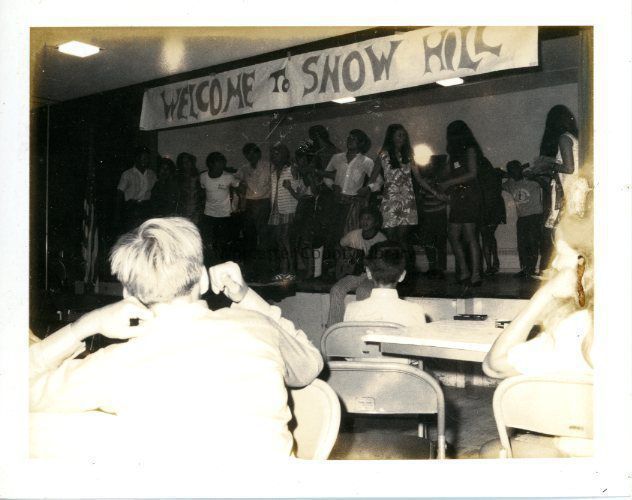 Photograph with “Welcome to Snow Hill” banner and unidentified peopleEntry/Object ID