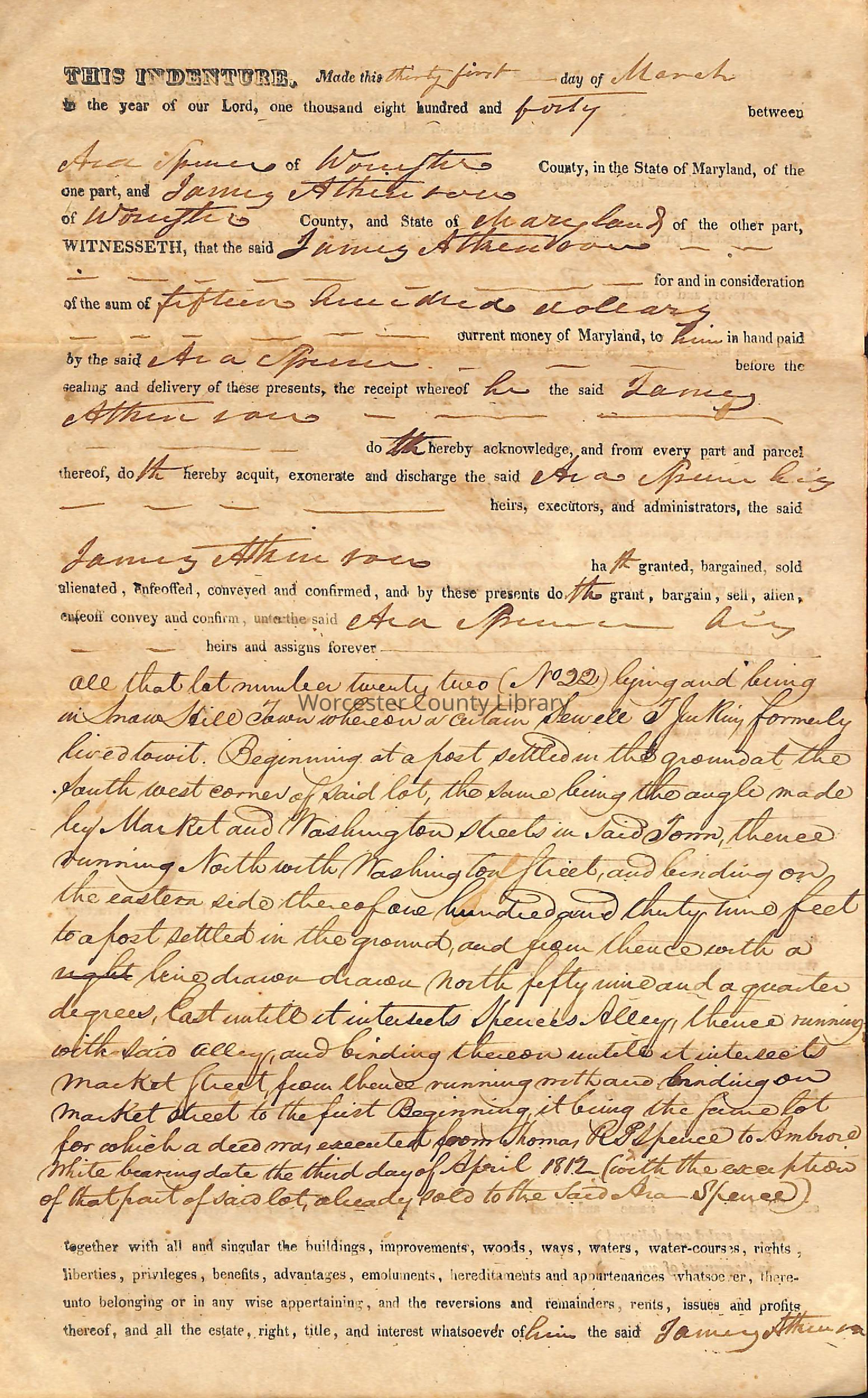 Indenture, Ara Spence and James Atkinson, 1840Entry/Object ID