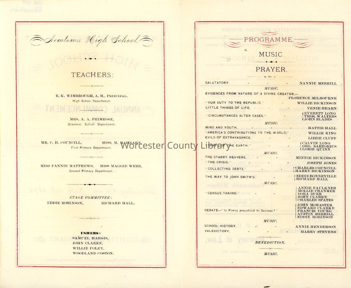 Debate – “Is Poetry prejudicial to Success?” – John McMaster, Edward Clarke, Francis Young, Austin Merrill, Eddie Robinson