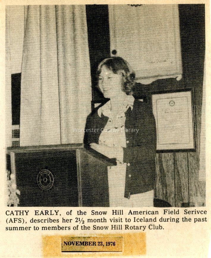 Newspaper clipping, Cathy Early at Rotary Club, Nov. 23, 1976Entry/Object ID