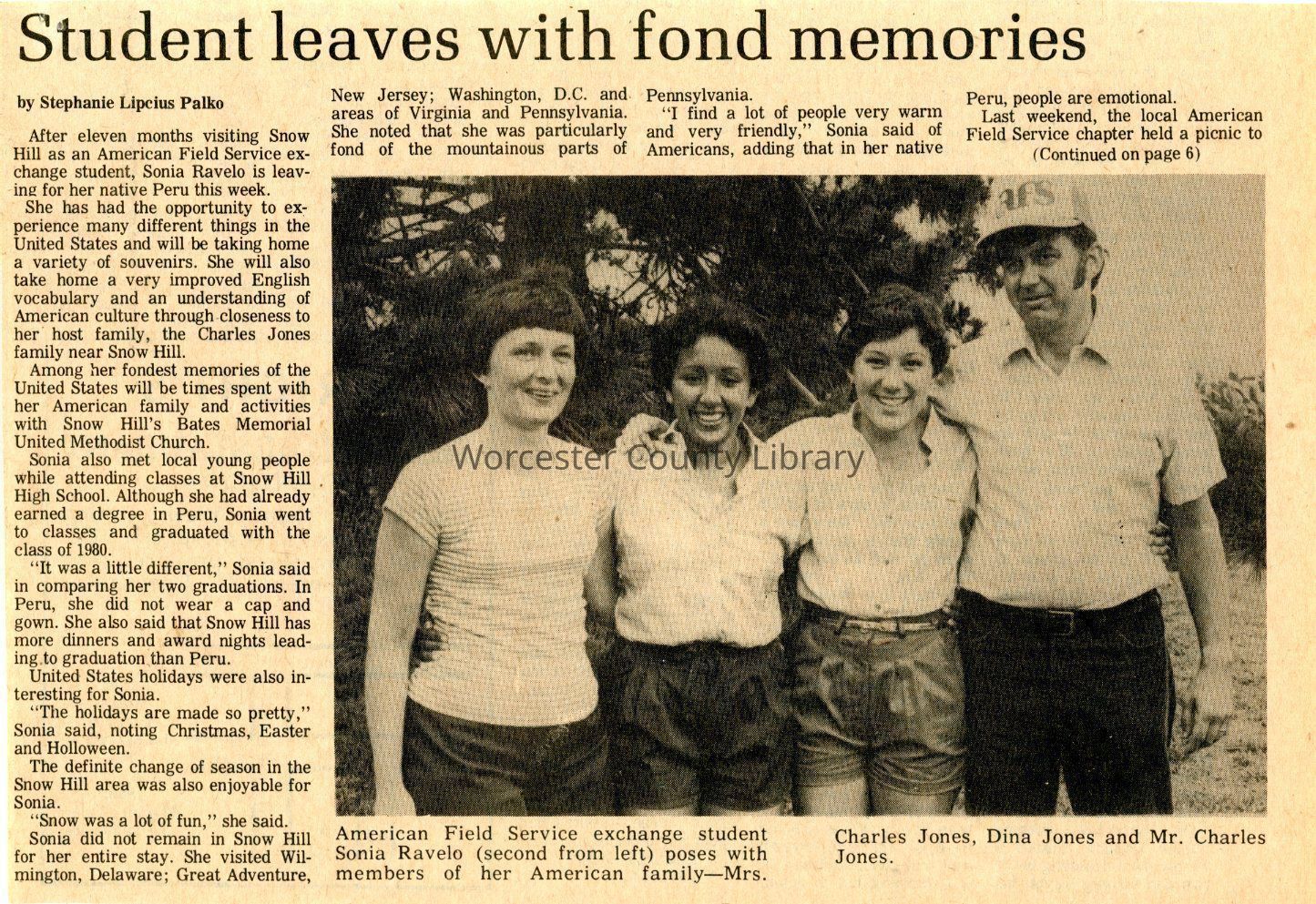 Newspaper clipping, “Student leaves with fond memories” (3 pieces), 1980Entry/Object ID