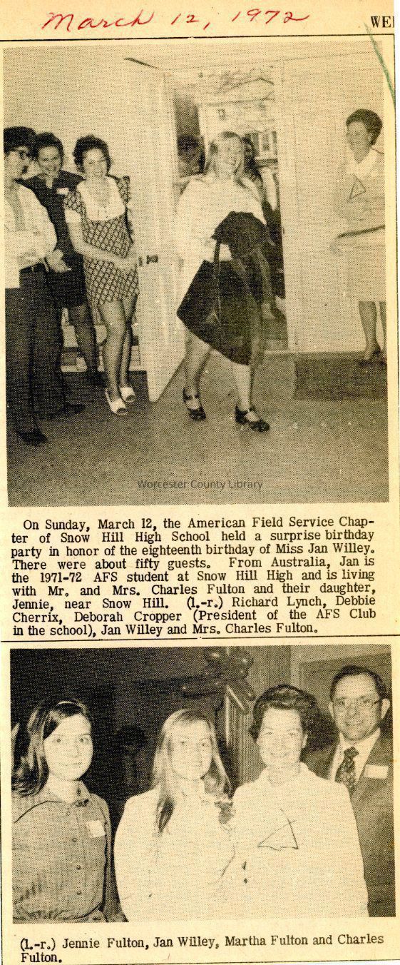 Deborah Ann Cherrix, Deborah Lynne Cropper, Charles Robert Fulton, Jennie Lynn Fulton Owen, Richard Lynch, Jan Willey, Martha Ellen Nock Fulton, American Field Service, Snow Hill High SchoolCreated By