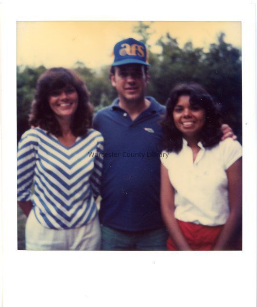 Photograph of Lilia Palamo and two unknown people at AFS Farewell Picnic, Jun 1982Entry/Object ID