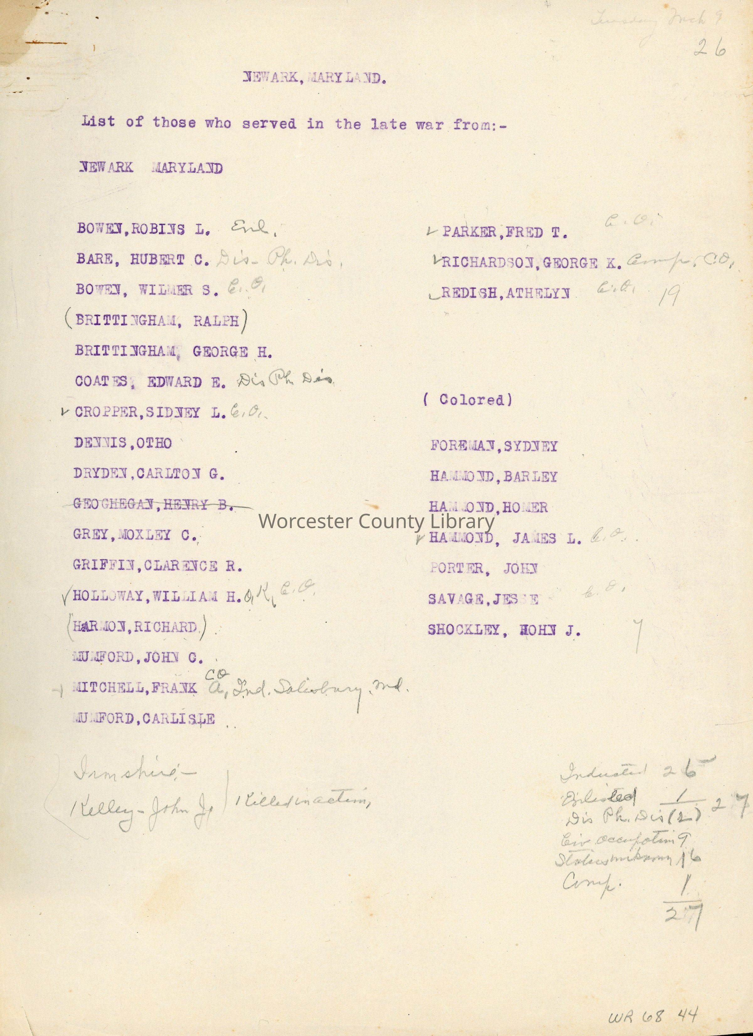 List of those who served in the late war from Newark, Maryland, World War IEntry/Object ID