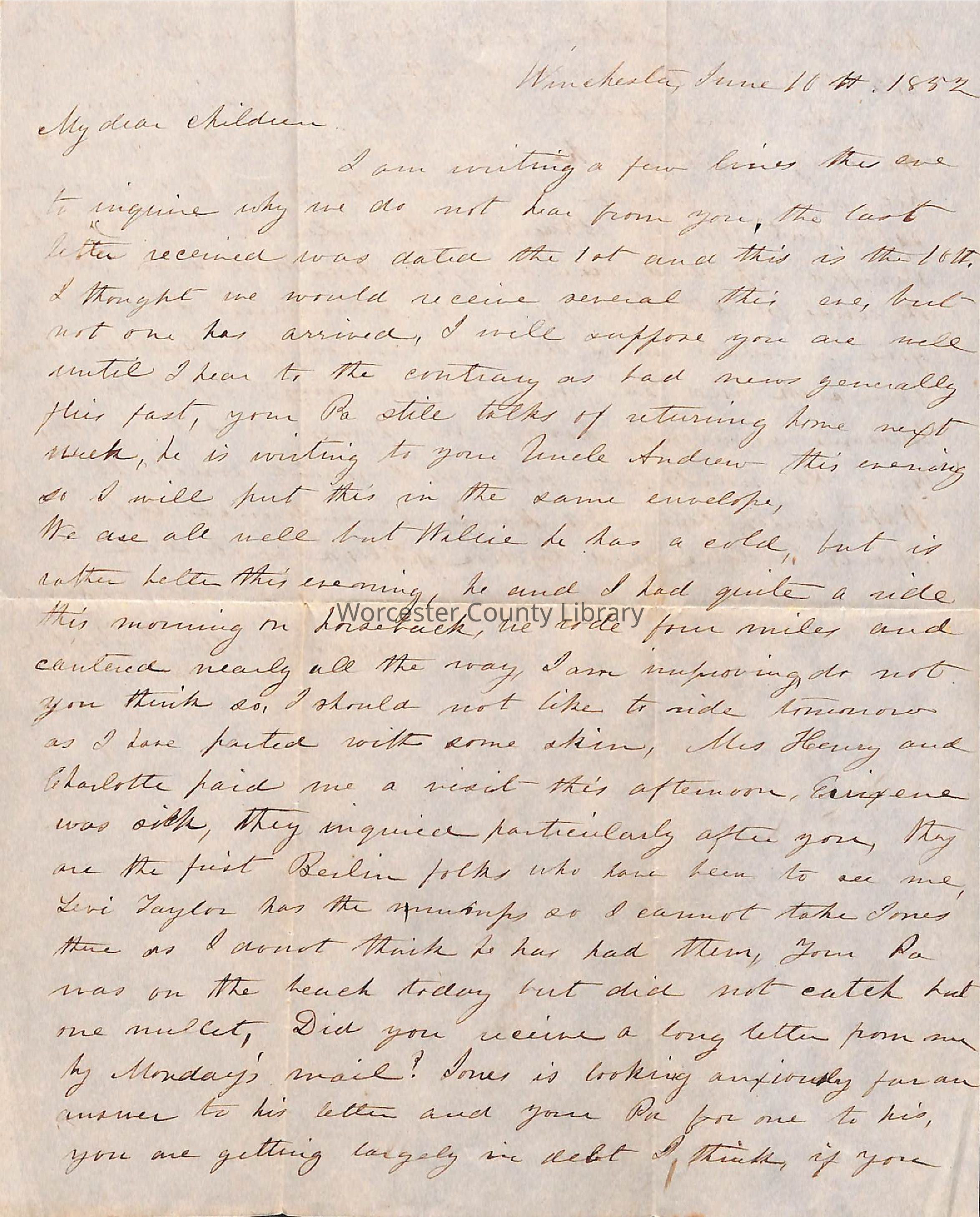 Correspondence, Mrs. J. A. Taylor to her children, 1852Entry/Object ID
