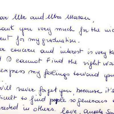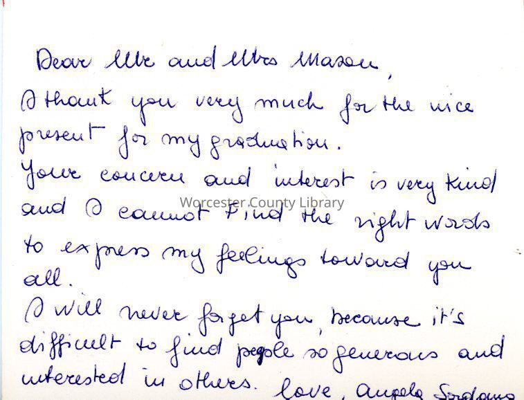 Correspondence, Thank you card from Angela Sordano to Mr. and Mrs. Ralph Mason, 1973Entry/Object ID