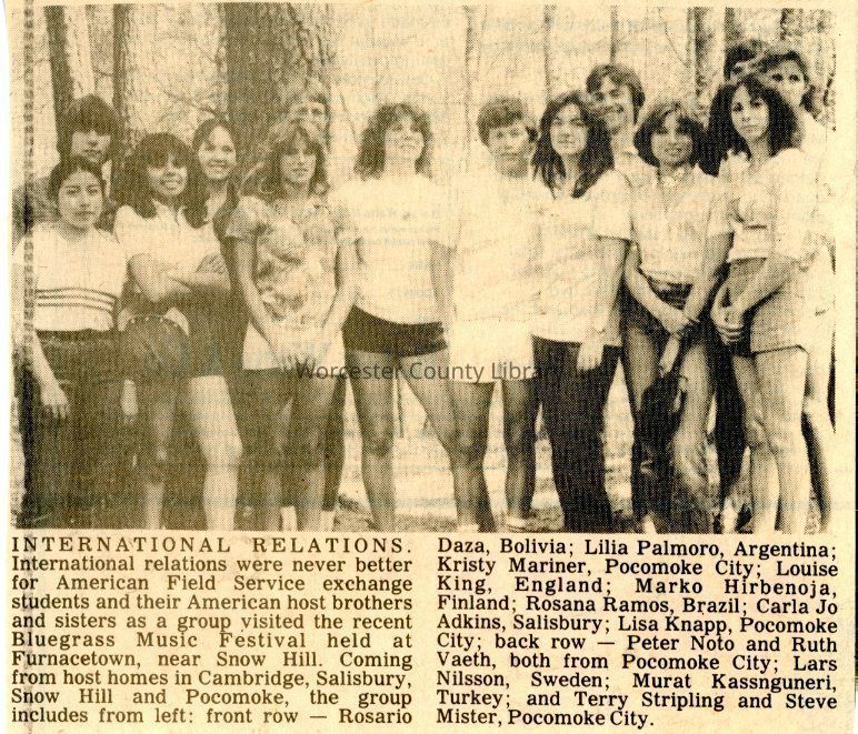 Newspaper clipping, AFS students at Bluegrass Music Festival, May 9, 1982Entry/Object ID