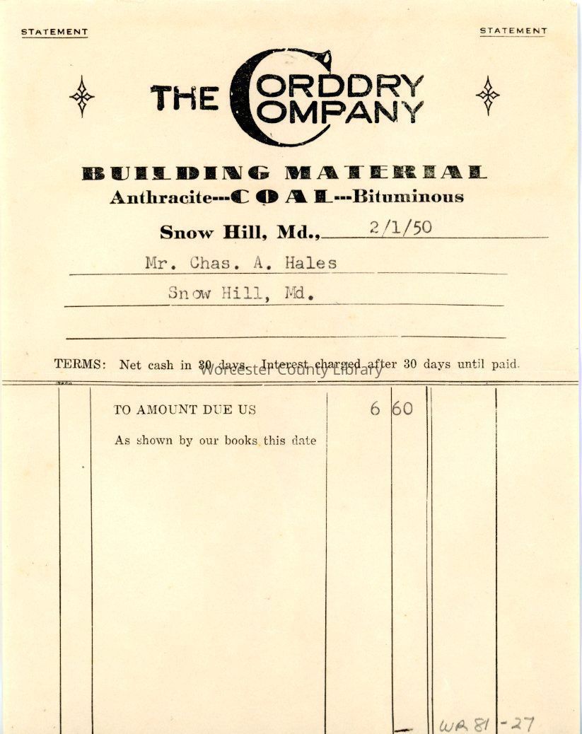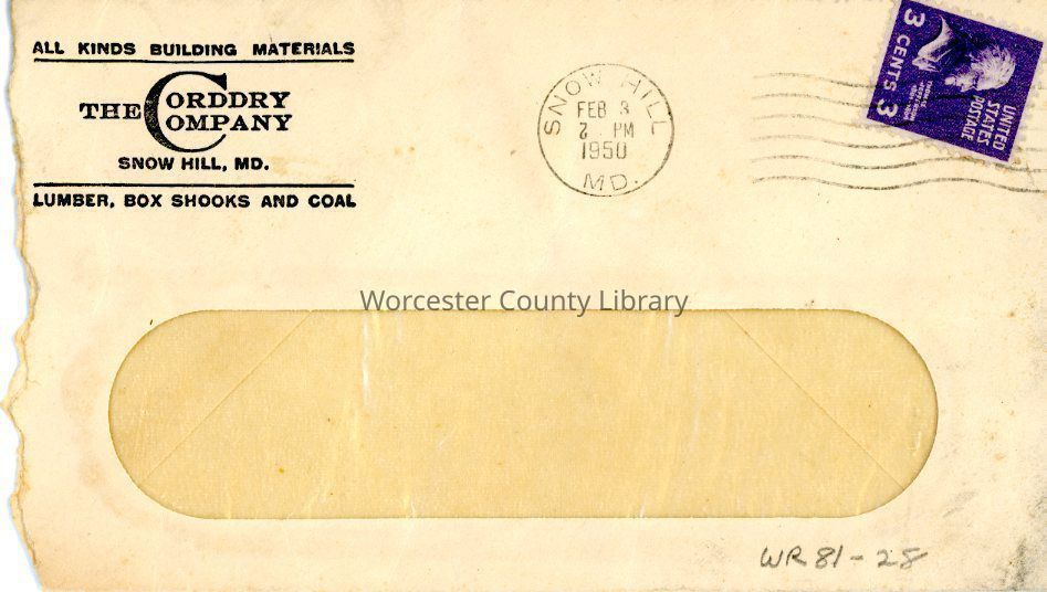 Statement and envelope, The Corddry Company, Feb. 1950Entry/Object ID