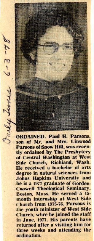 Newspaper clipping, “Ordained” (Paul Parsons), June 3, 1978Entry/Object ID