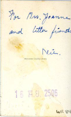 Photograph of Nic, note to Miss Joanne on reverseEntry/Object ID
