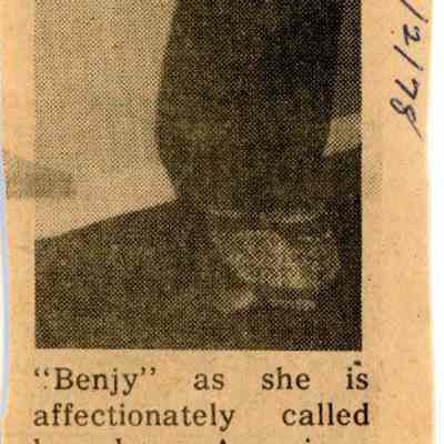 As anxious to share her own cultural heritage as she is to learn about Western cultures, "Benjy" will play the Thai harp, known as a kim, which she has often played on TV in her native land and will also demonstrate the classical Thai dances in which she is proficient. She will tell about Thai family life and about holidays and feasts in which Thai families take part.
