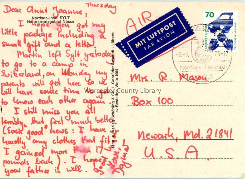 Correspondence, Postcard from Dagmar Landtau to Joanne Mason, 1975