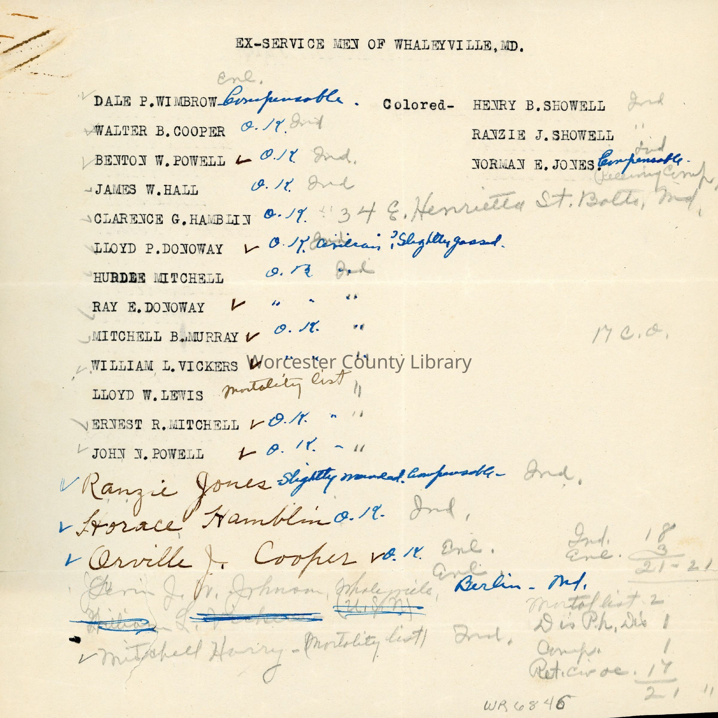 Ex-Service Men of Whaleyville, MD., World War IEntry/Object ID