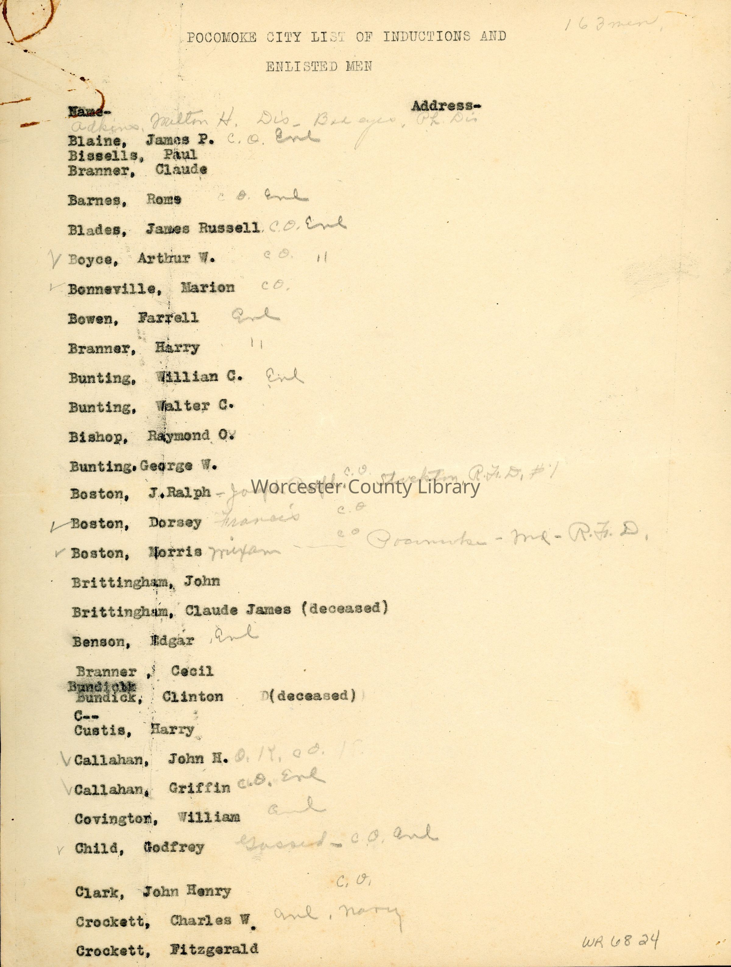 Pocomoke City List of Inductions and Enlisted Men, World War IEntry/Object ID